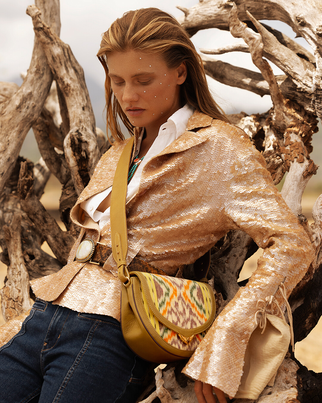 Notre nouveau sac demi-lune Chris est composé de cuir vintage. Son anse, entrelacée par de gros noeuds en cuir, p…