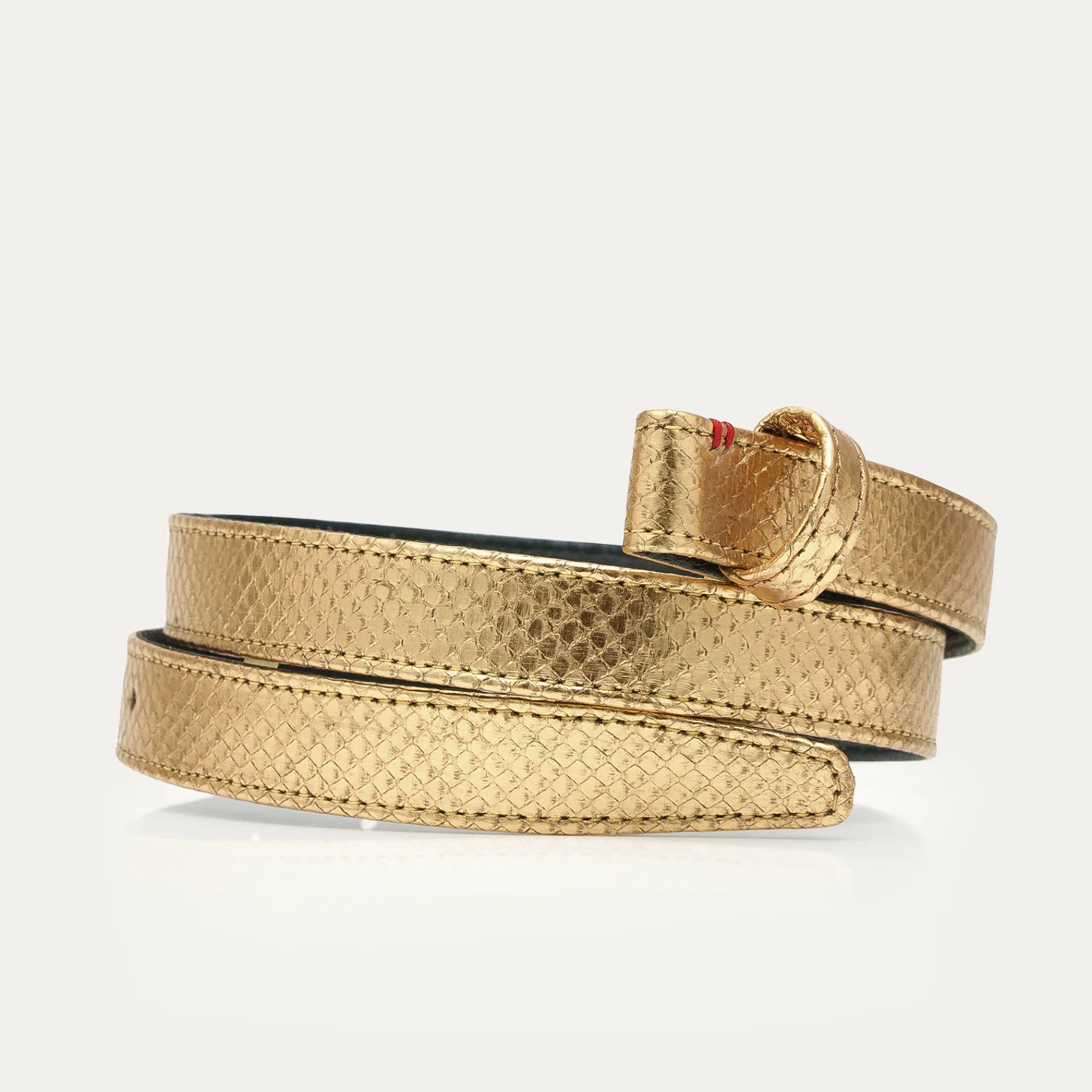 Ce ceinturon plus fin en python est doublé de cuir et orné d’une magnifique boucle en forme de scarabée. Elle donne…