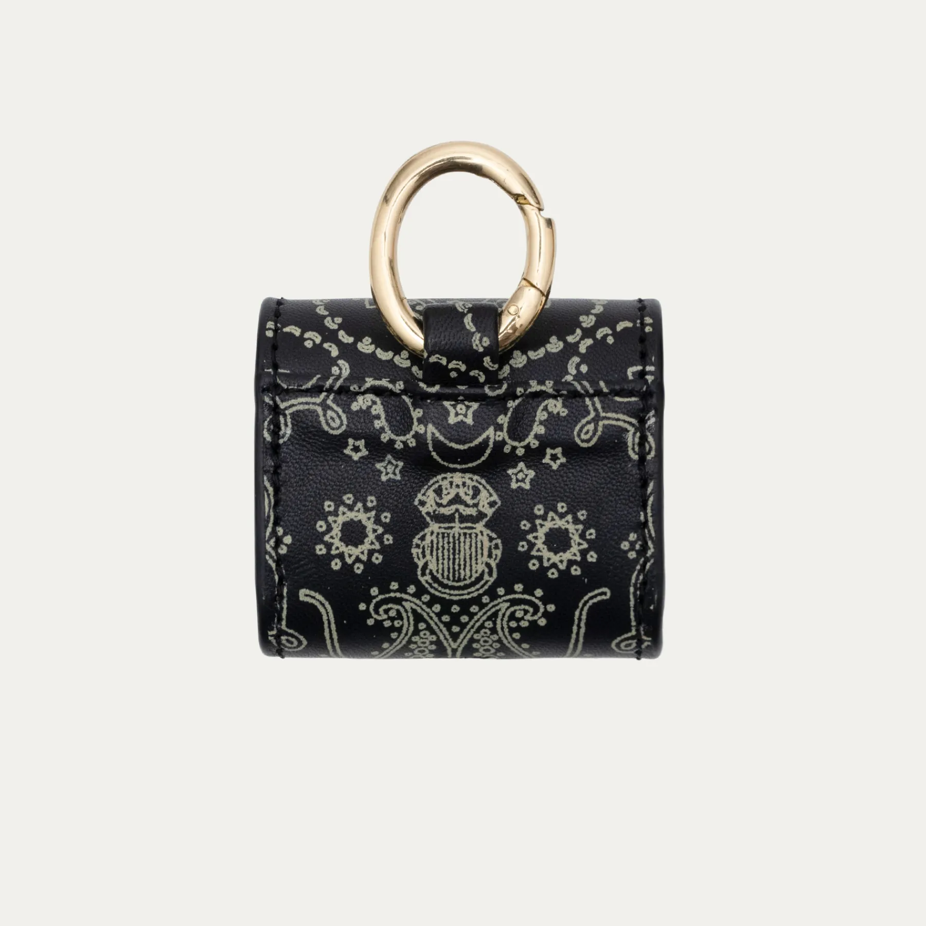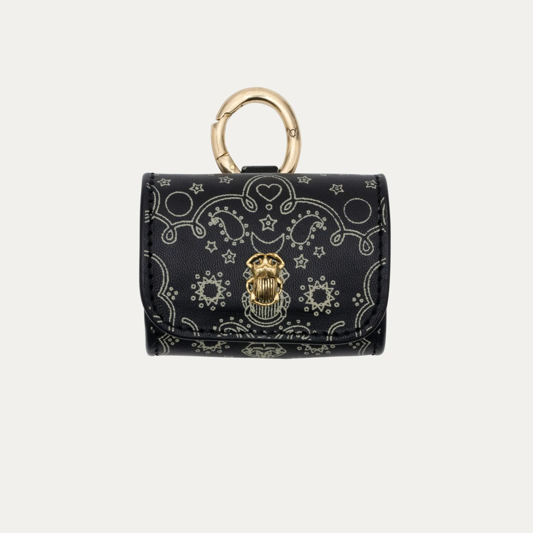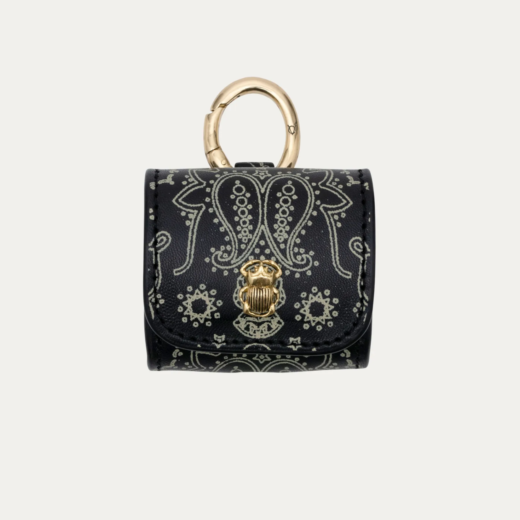 Notre premier étui à AirPods Jamie entièrement composé de python est orné d’une beetle dorée à l’avant. Son mousqueton vous permettra de l’accrocher aussi bien à vos passants de pantalon, qu’à votre sac ou étui de téléphone portable, tel que notre Double Marcus.