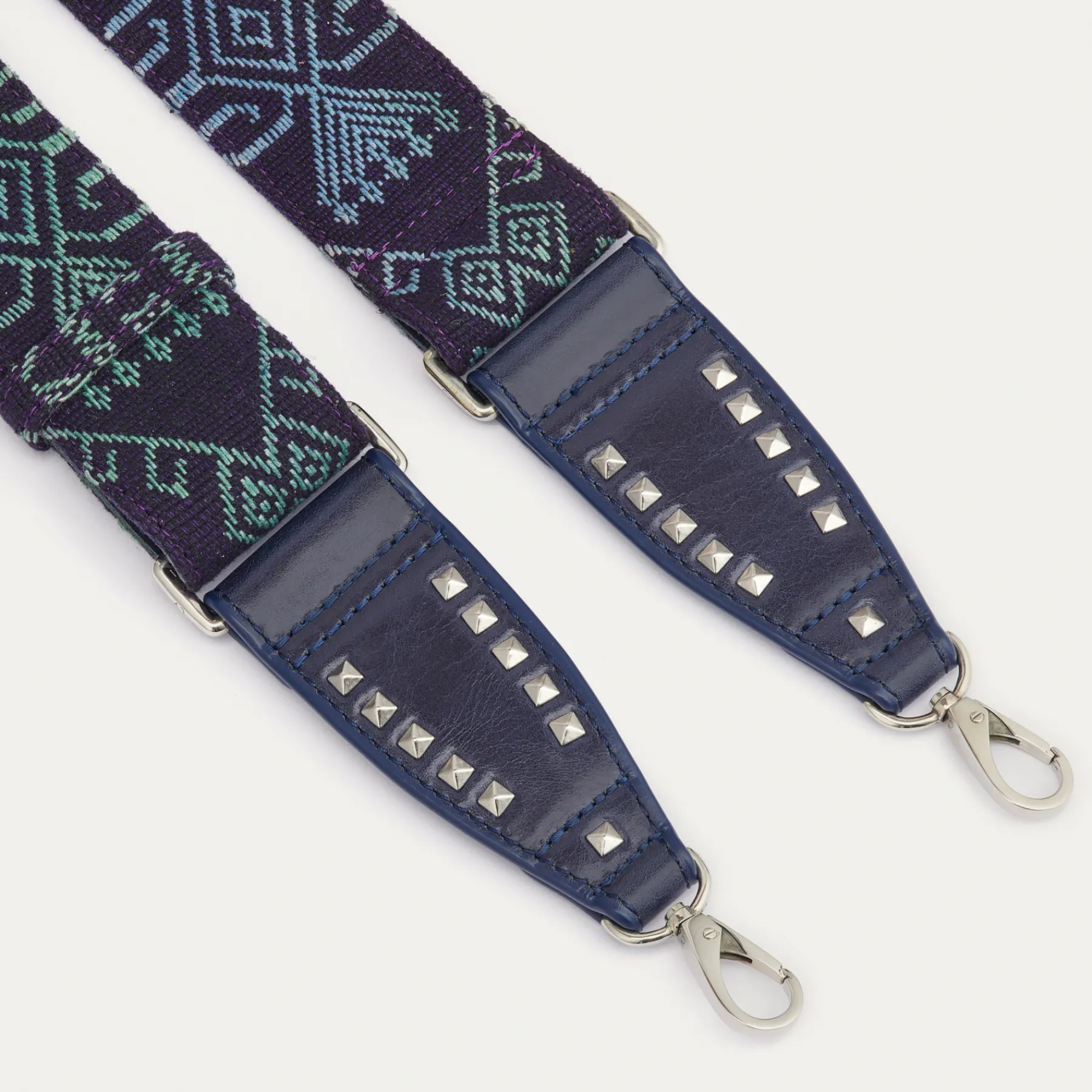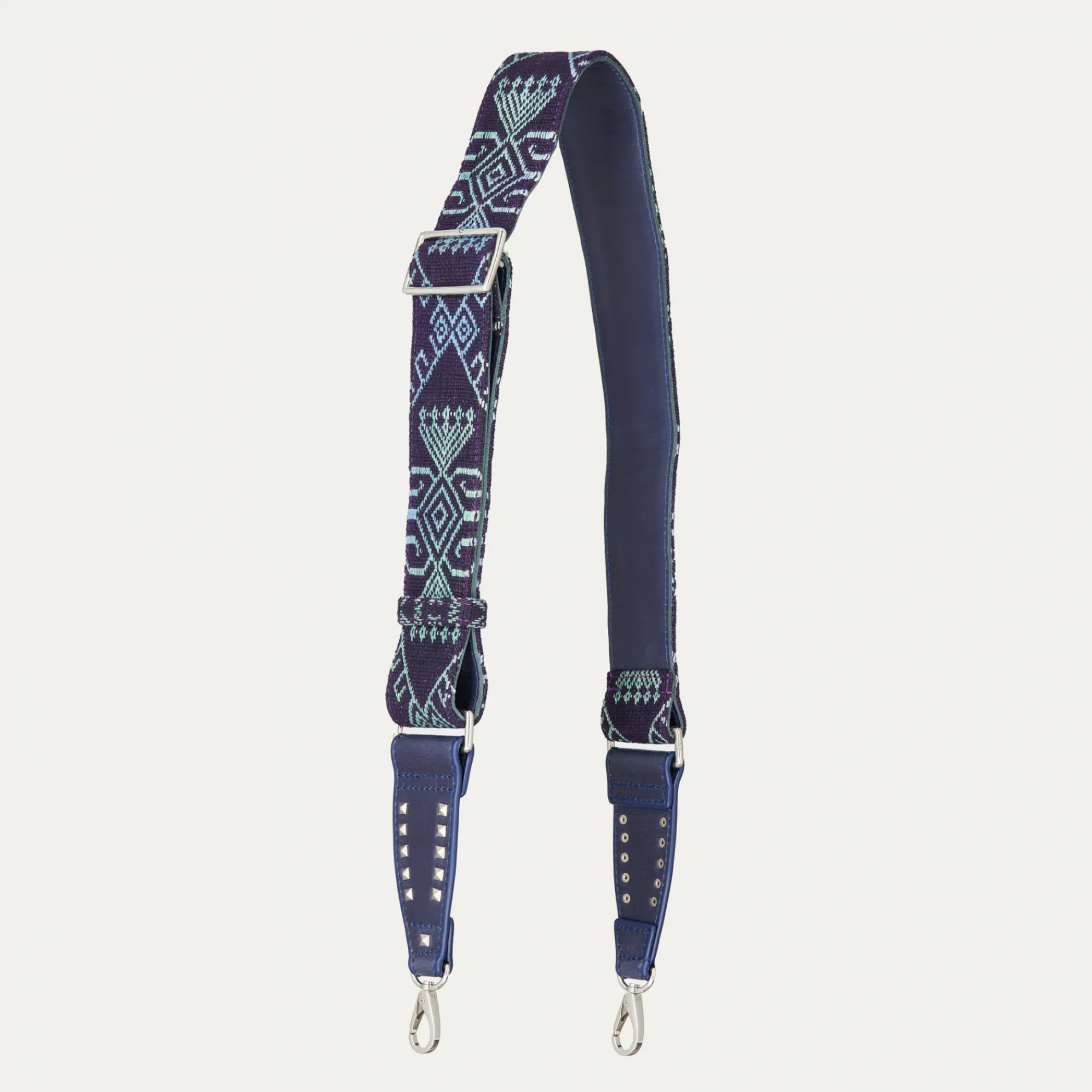 Bandoulière faite à la main en tissu Endek Indigo par les artisans de l’Ile Timor avec crochets, pour donner un nouveau look à vos sacs avec bandoulière amovible.