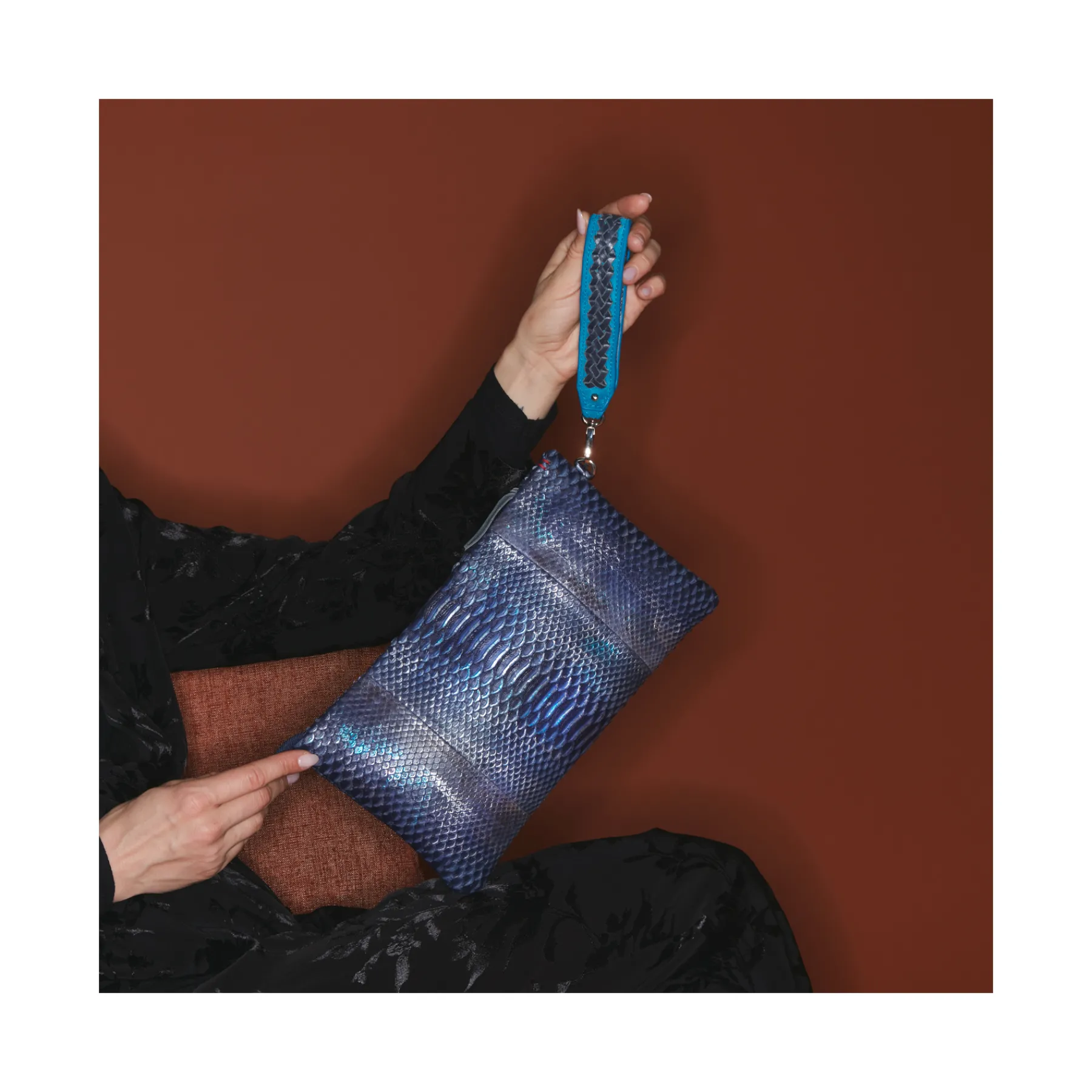 Cette pochette souple en python est un accessoire classique qui vous suivra saison après saison sans jamais se démoder.