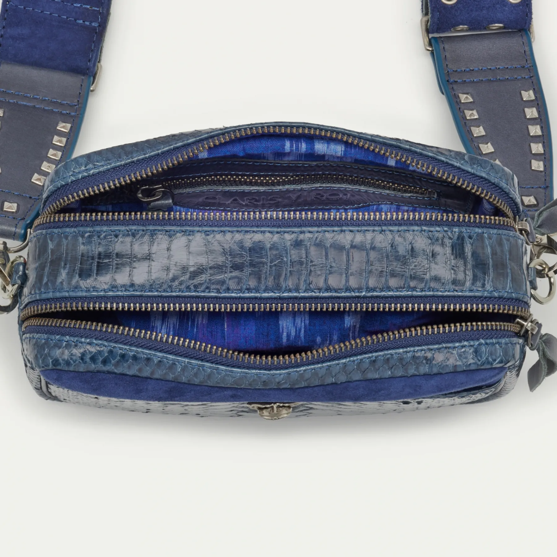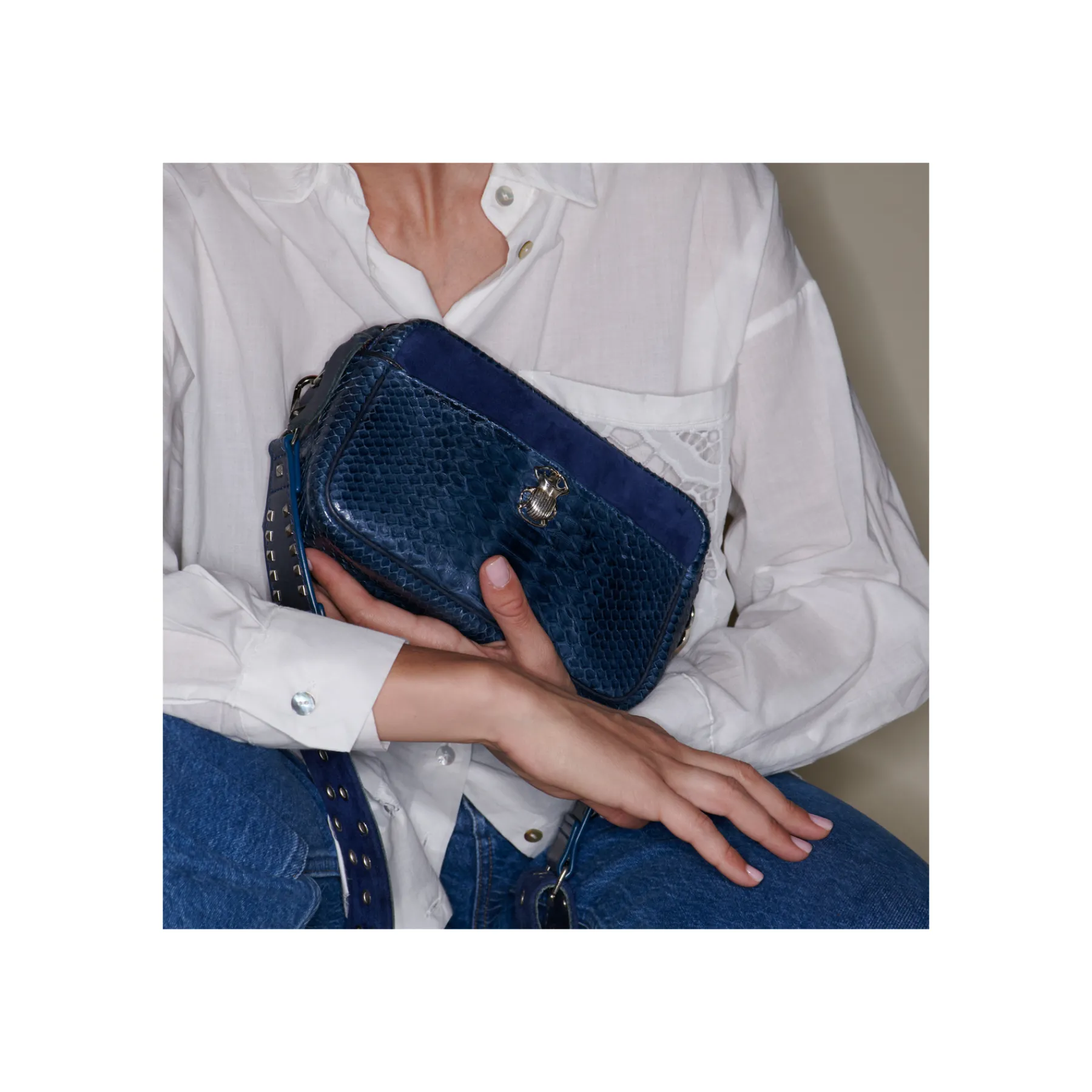 Ce sac en python et veau velours porté épaule ou croisé est organisé en deux compartiments avec une poche centrale parfaitement étudiée pour y accueillir votre téléphone. Ses deux compartiments distincts ont été pensés afin de vous organiser au mieux! Enfin, sa large bandoulière en veau velours permet un porté confortable et léger.