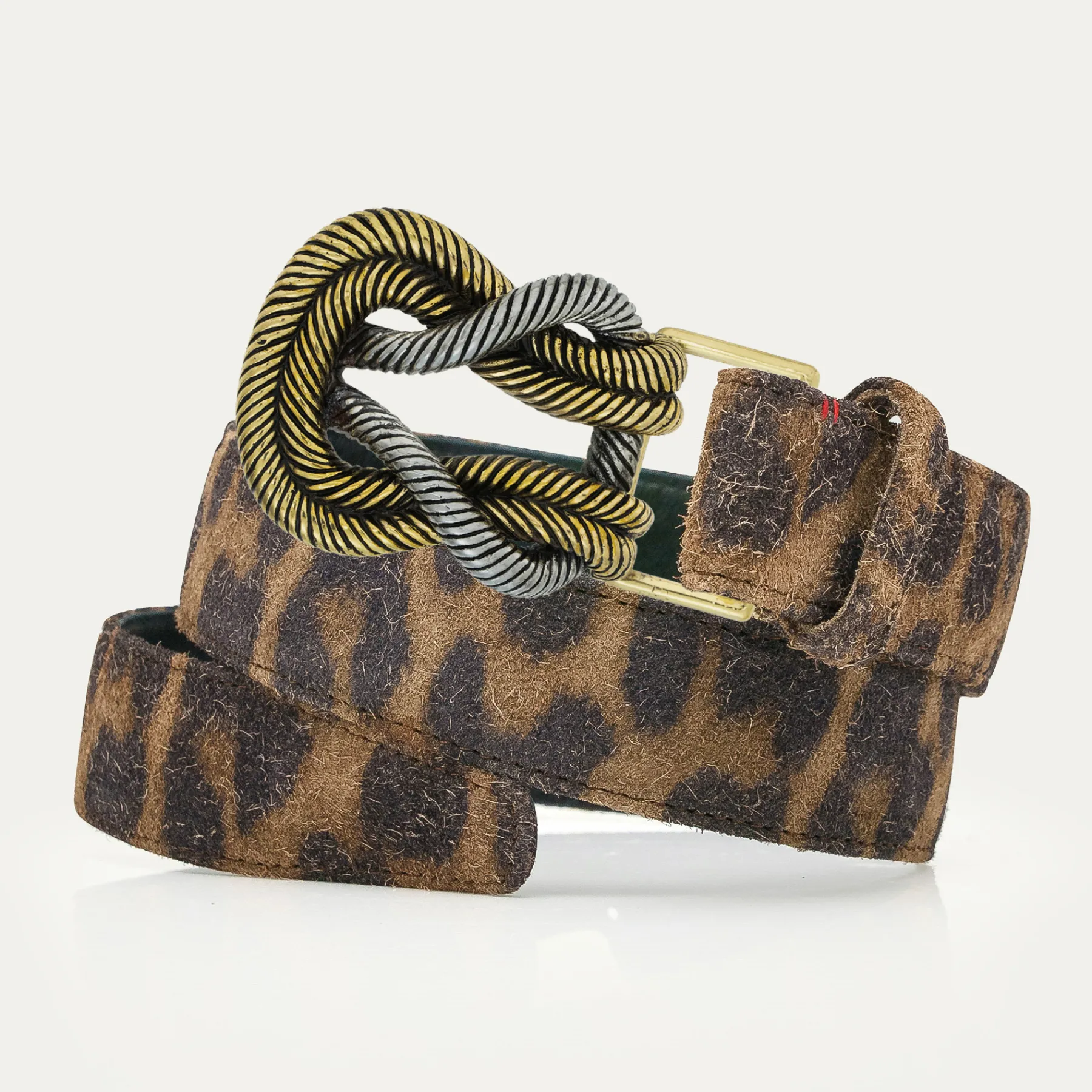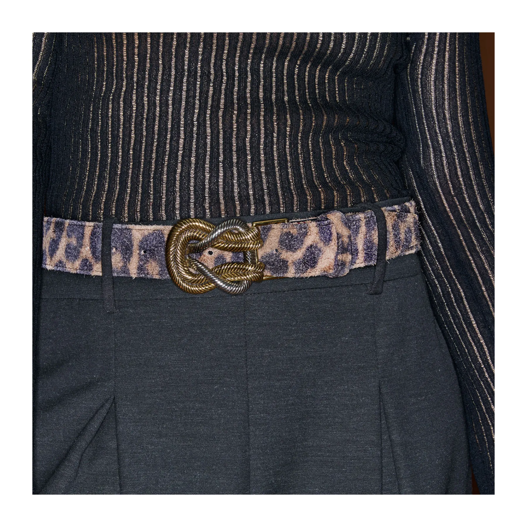 Ce ceinturon, doublé de cuir, est orné d’une magnifique boucle ovale en forme de noeud et en laiton. Elle donne un look fort aux tenues les plus simples et se porte aussi bien sur un jean que sur une robe.
