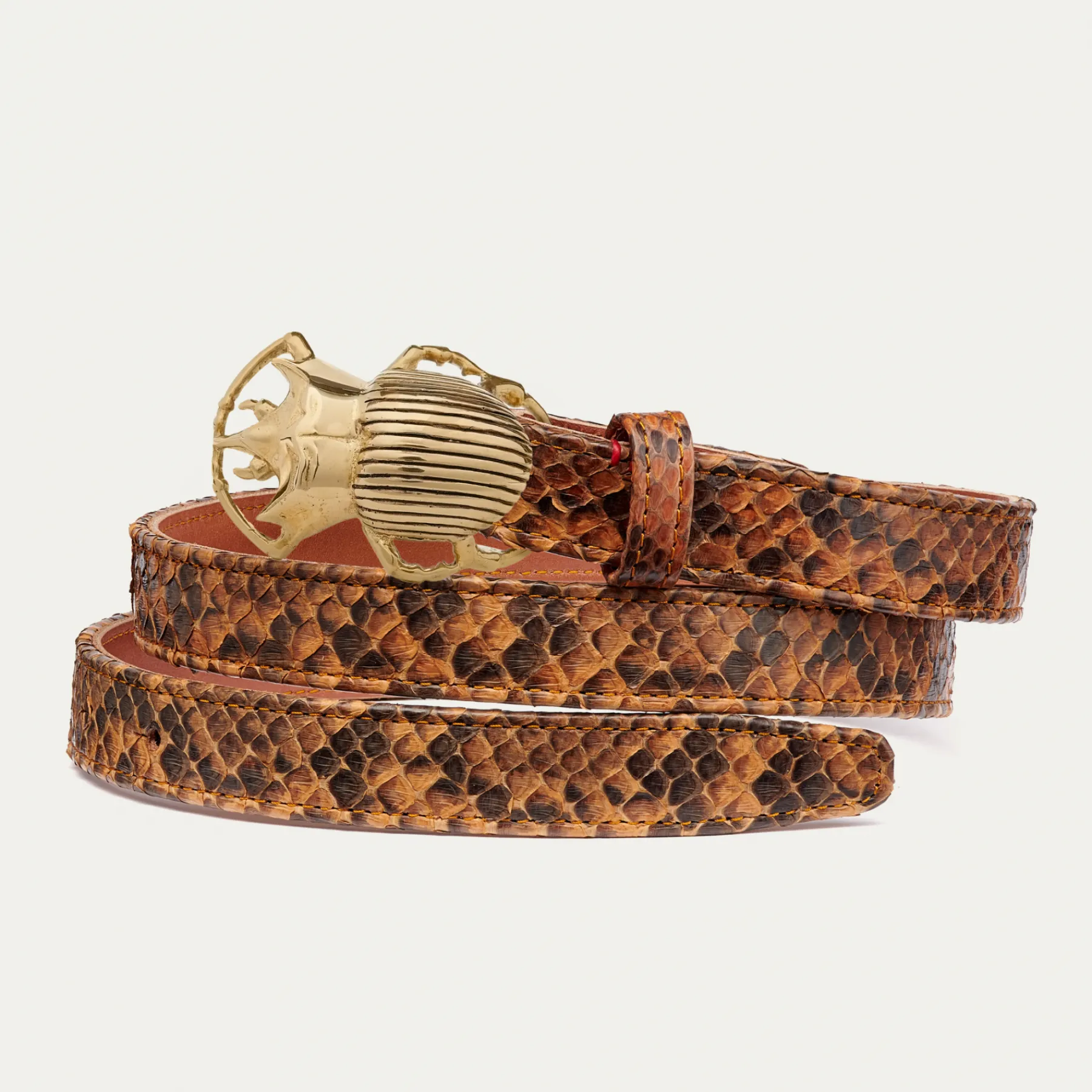 Ce ceinturon plus fin en python est doublé de cuir et orné d’une magnifique boucle en forme de scarabée. Elle donne…