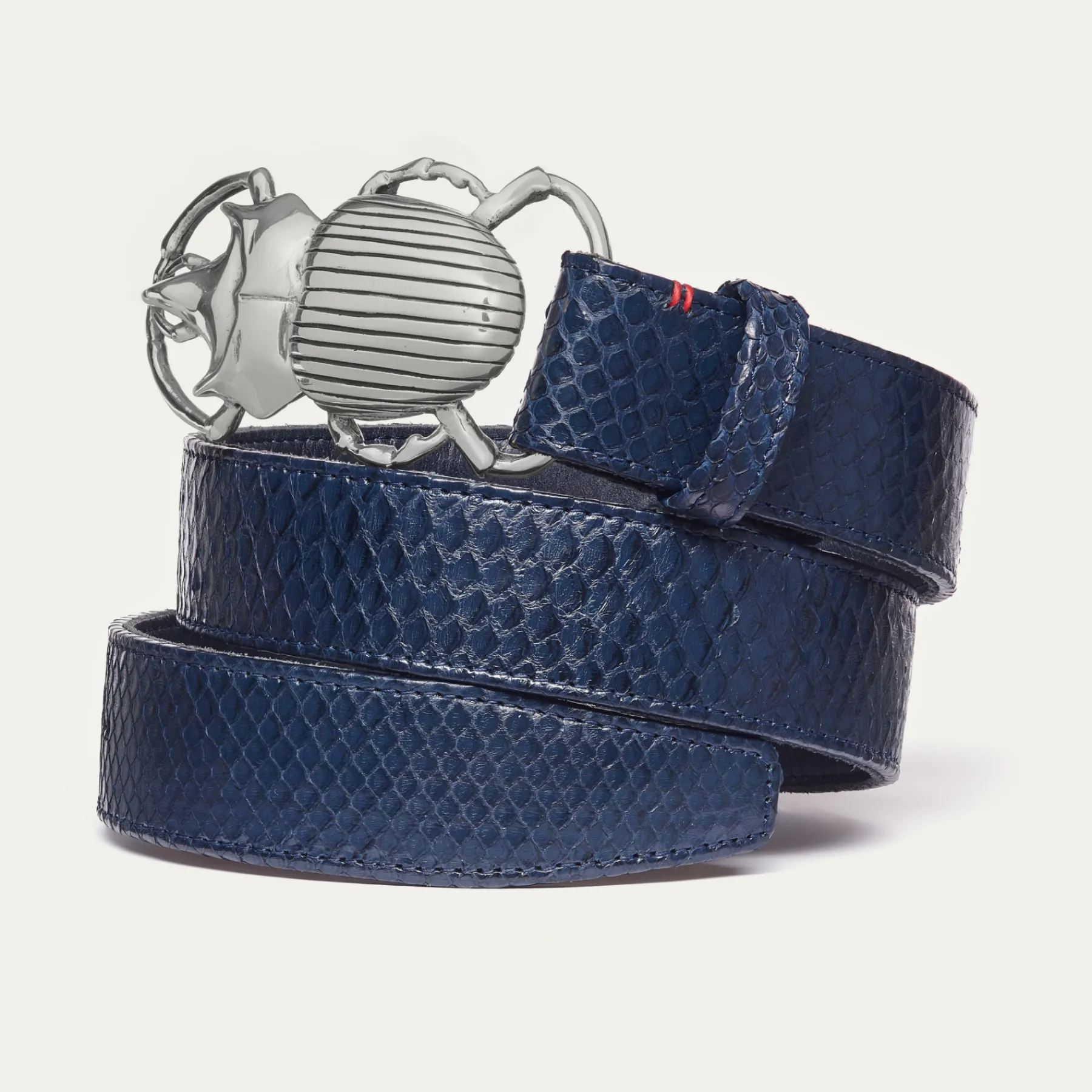 Ce ceinturon, doublé de cuir est orné d’une magnifique boucle en forme de scarabée. Elle donne un look fort aux tenue…