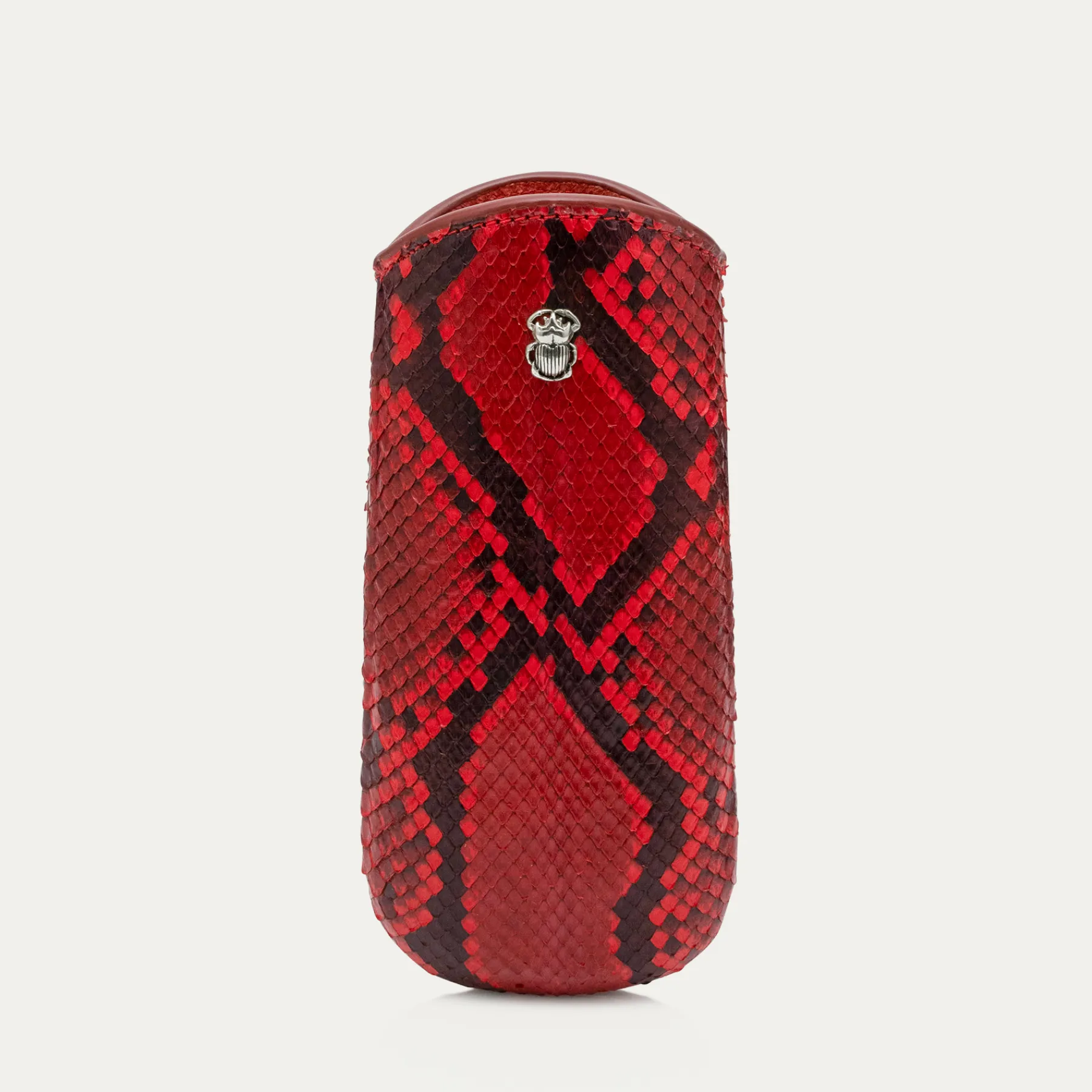 Notre étui à lunettes Maya a été réalisé à la main et confectionné en python. Il est doté d’une poche principale, orné d’un mini scarabée.