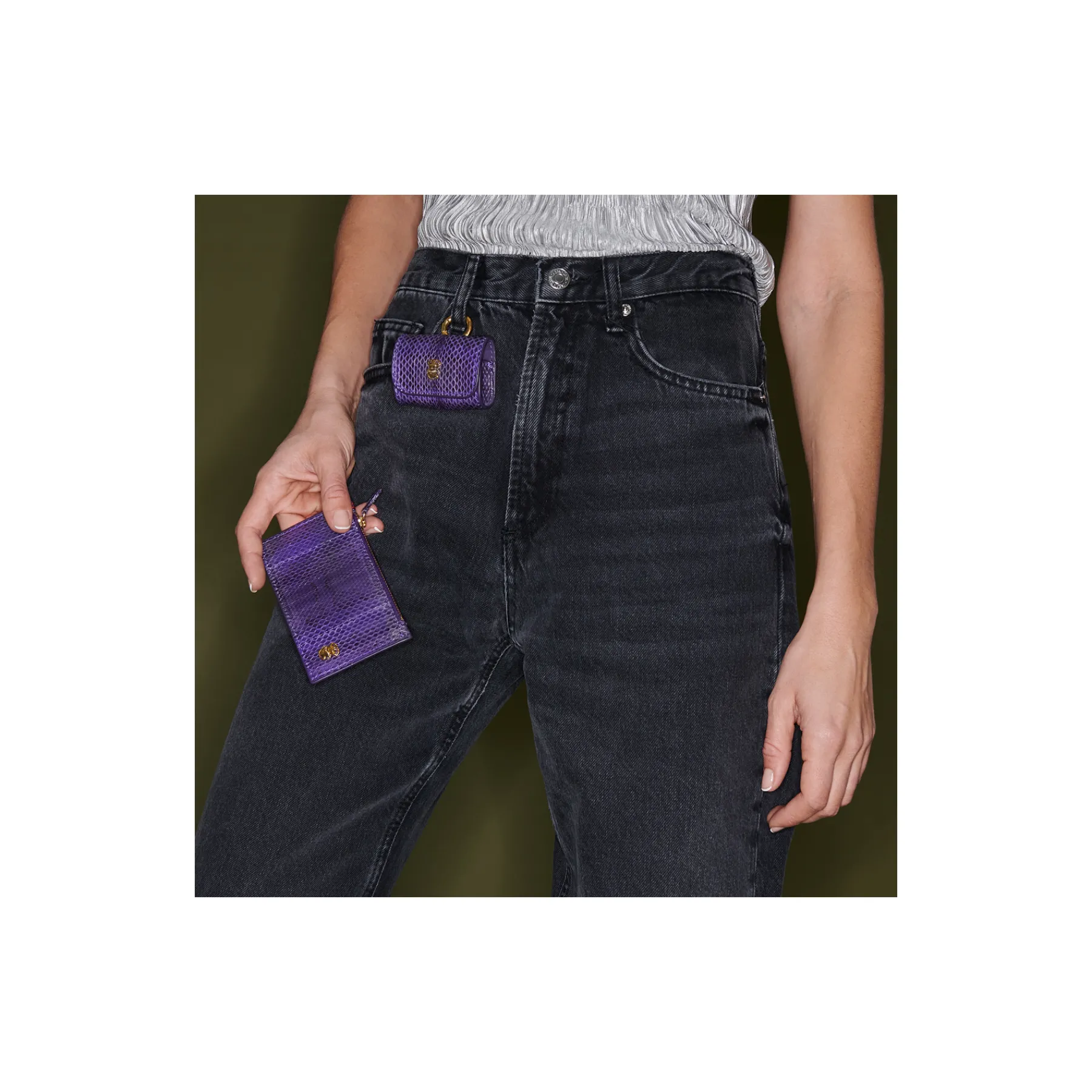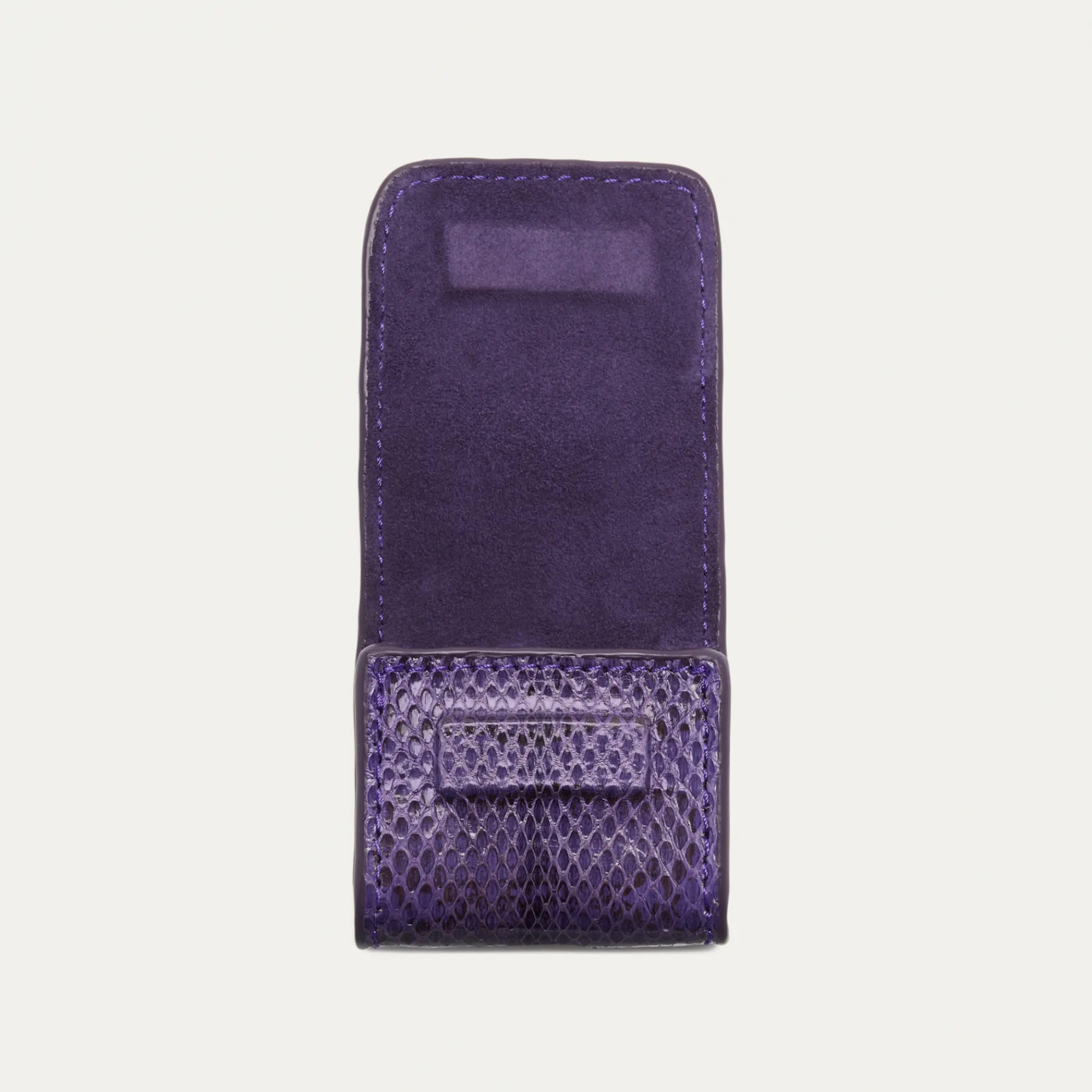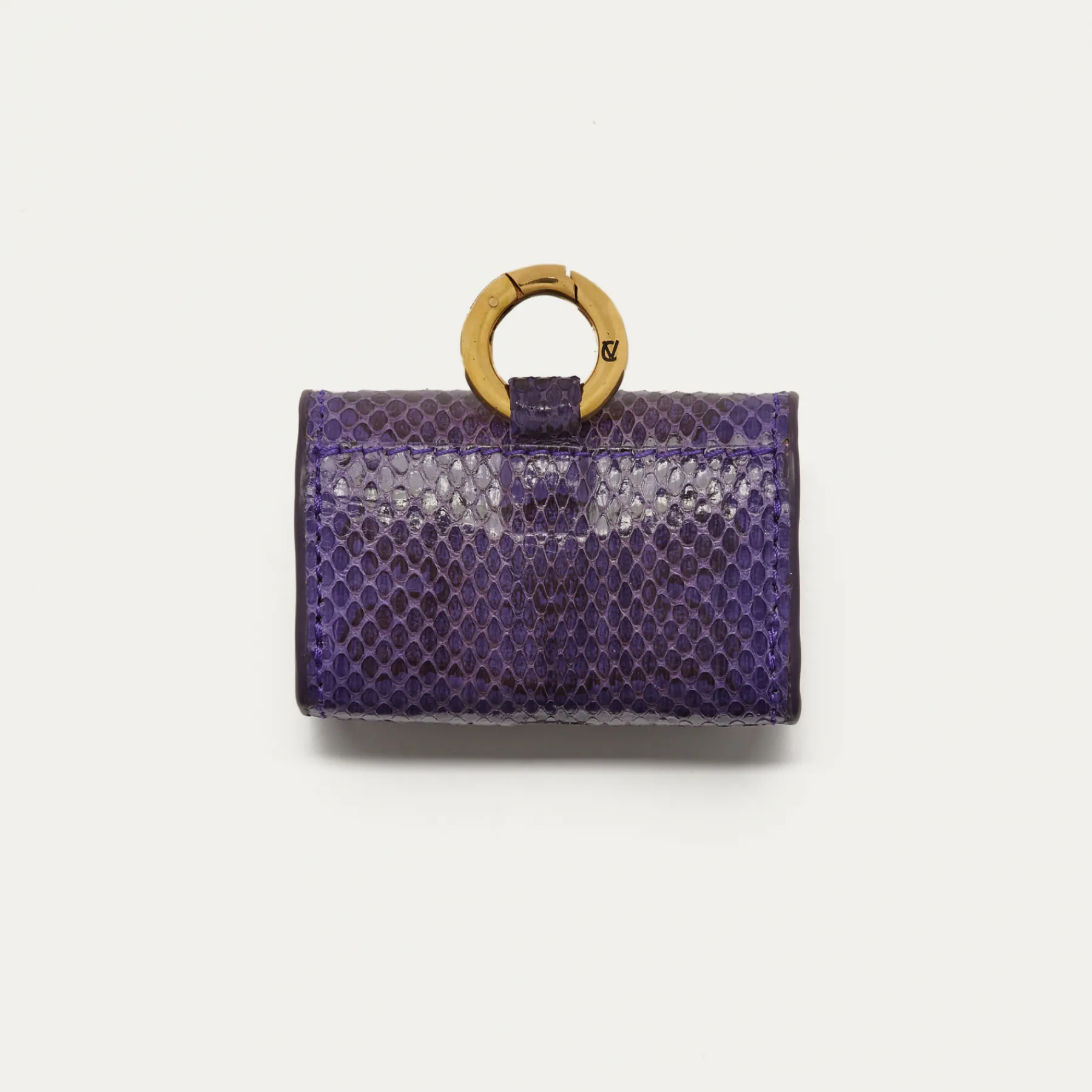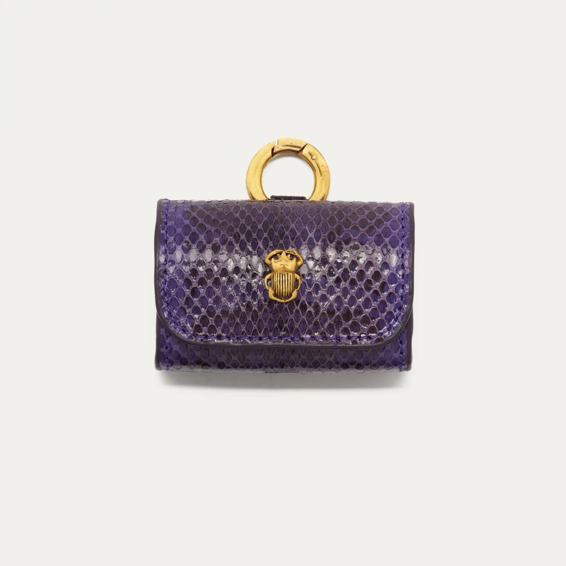 Notre premier étui à AirPods Jamie entièrement composé de python est orné d’une beetle dorée à l’avant. Son mousqueton vous permettra de l’accrocher aussi bien à vos passants de pantalon, qu’à votre sac ou étui de téléphone portable, tel que notre Double Marcus.