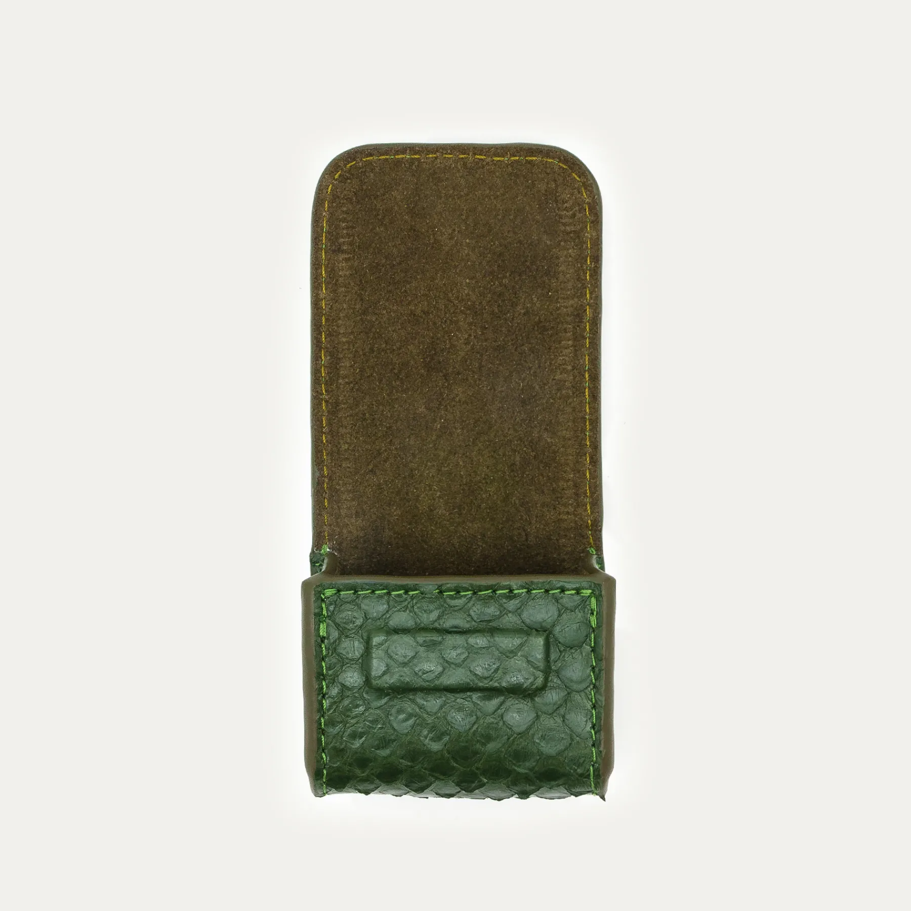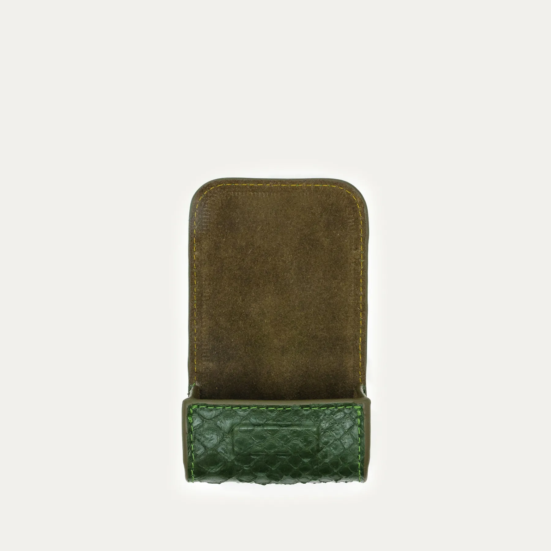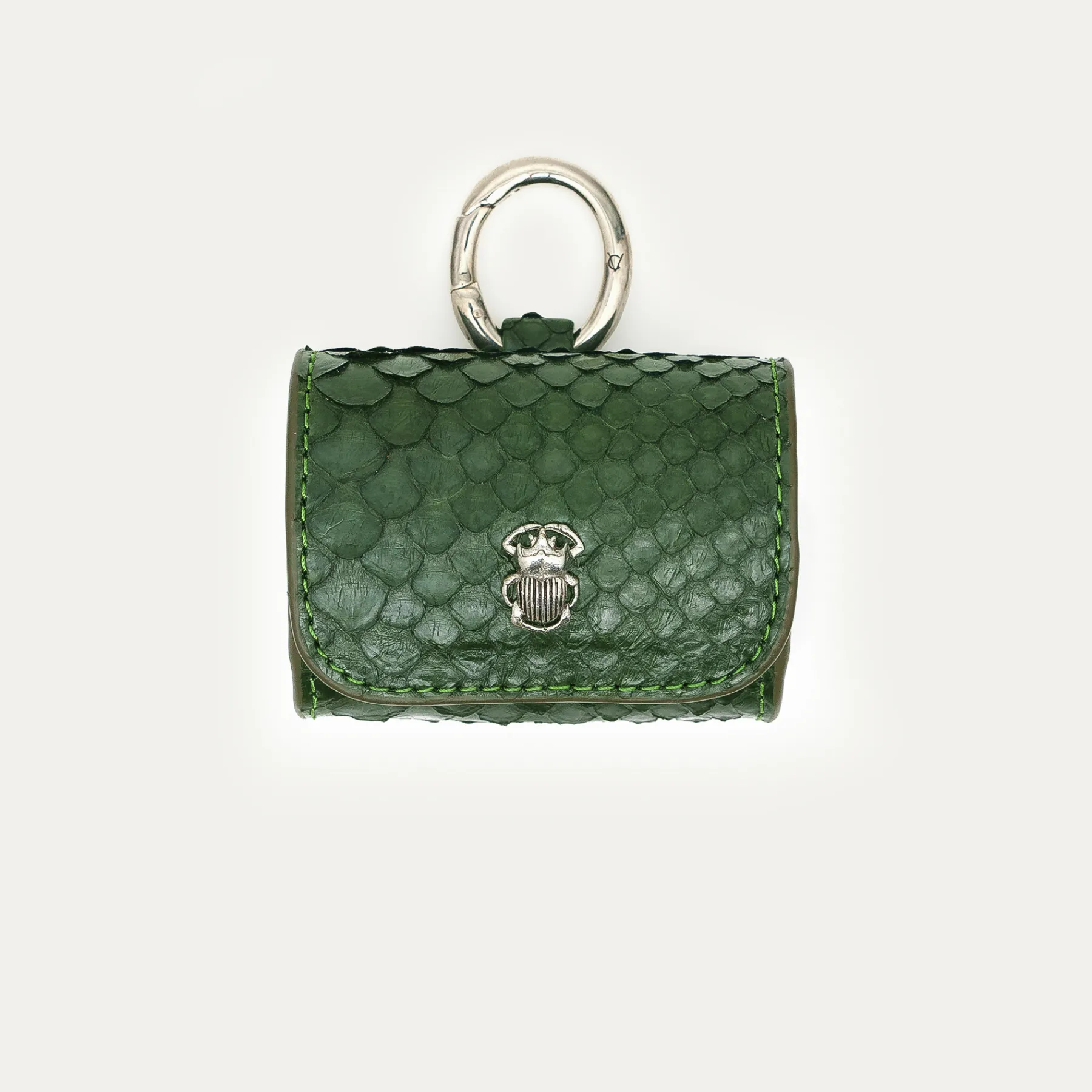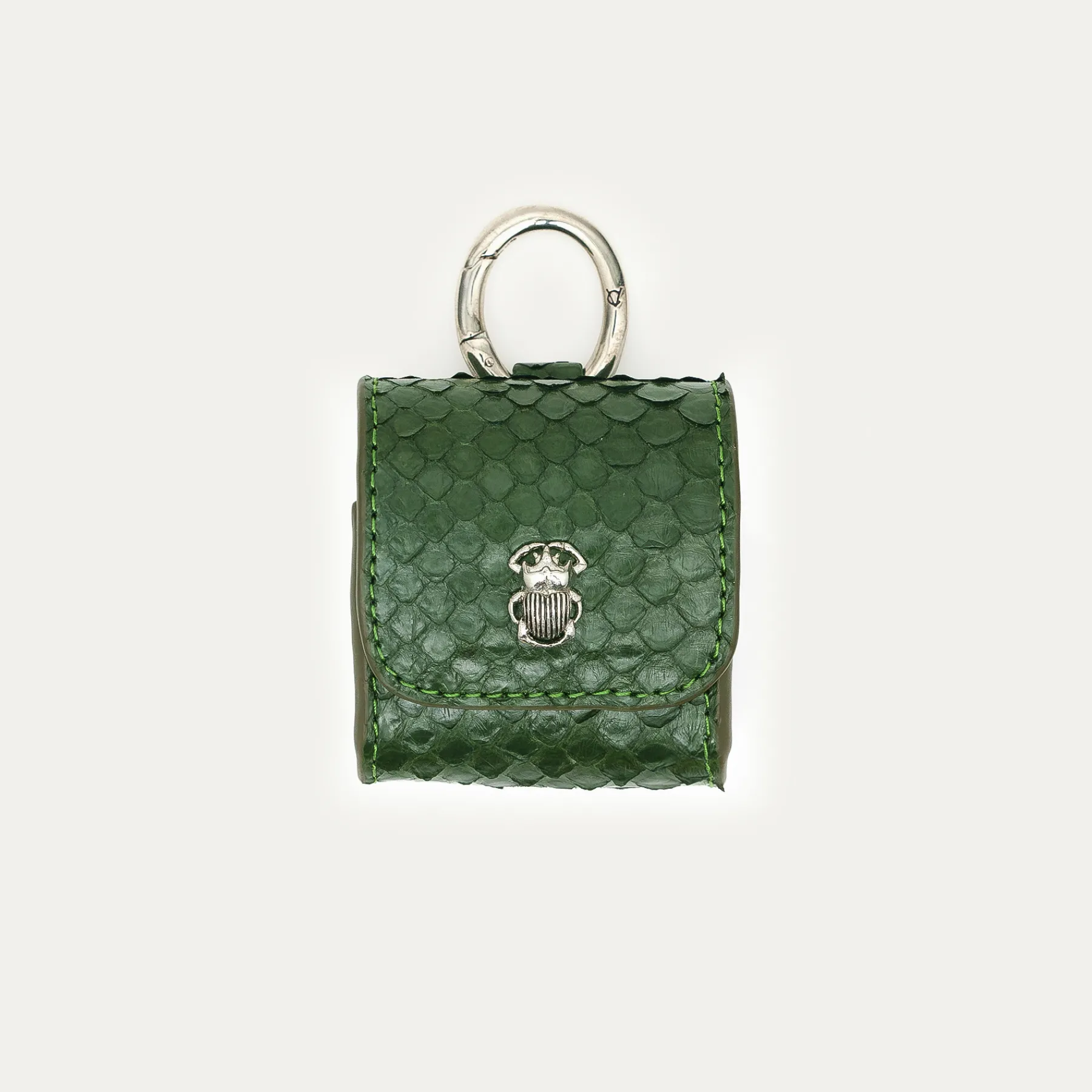 Notre premier étui à AirPods Jamie entièrement composé de python est orné d’une beetle dorée à l’avant. Son mousqueton vous permettra de l’accrocher aussi bien à vos passants de pantalon, qu’à votre sac ou étui de téléphone portable, tel que notre Double Marcus.