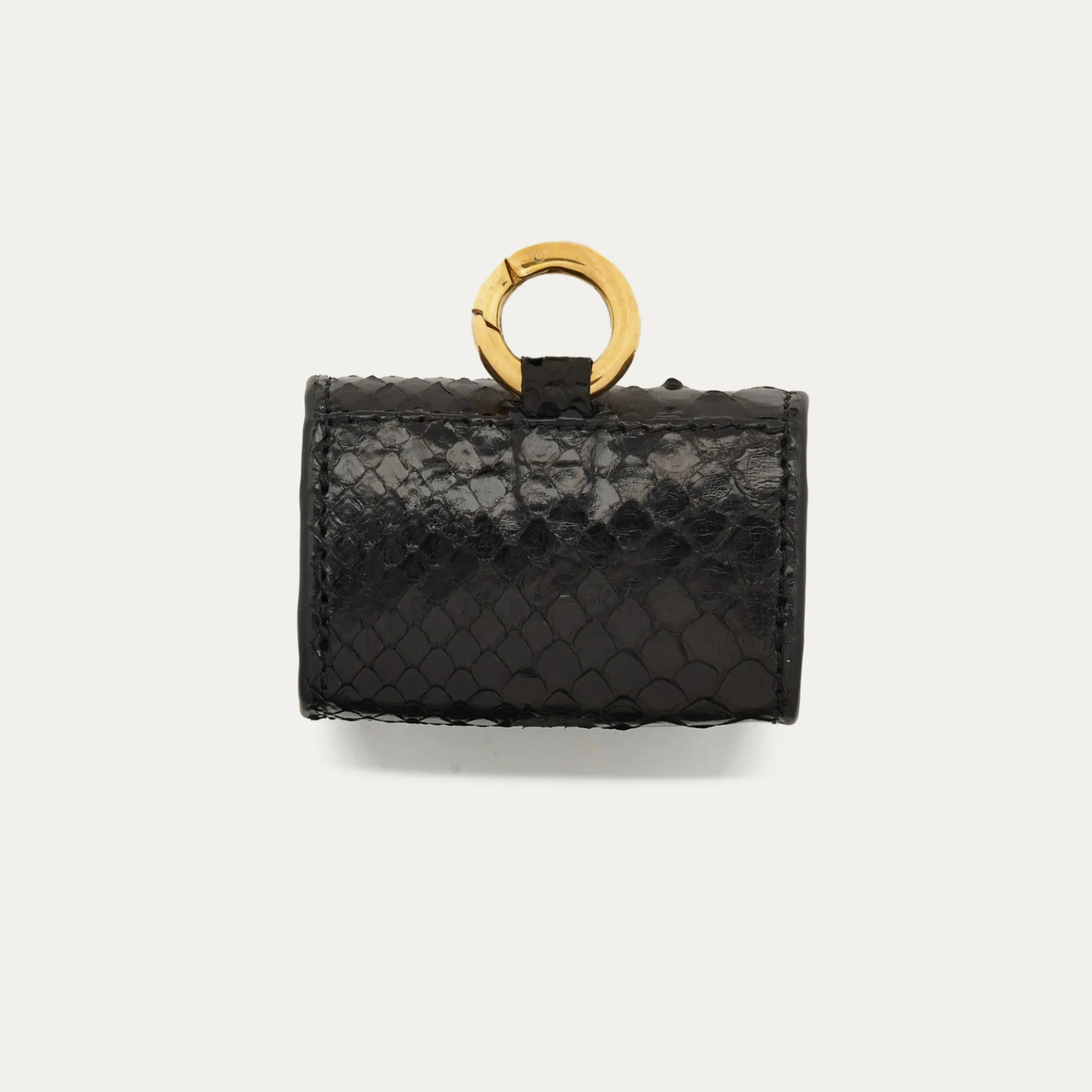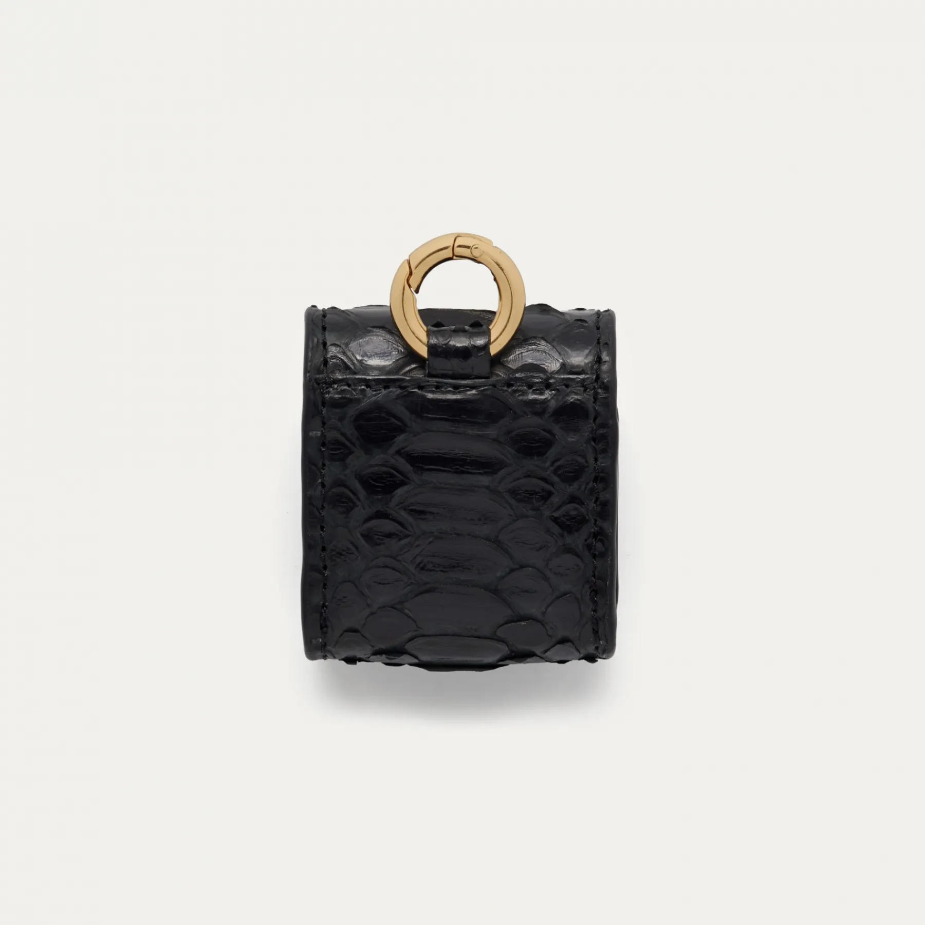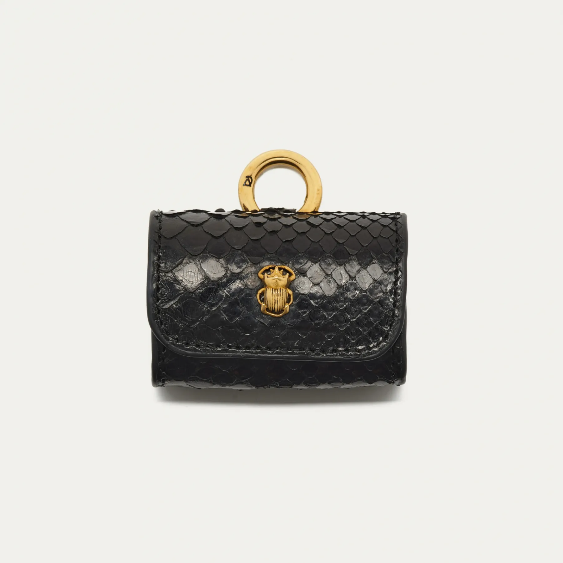 Notre premier étui à AirPods Jamie entièrement composé de python est orné d’une beetle dorée à l’avant. Son mousq…