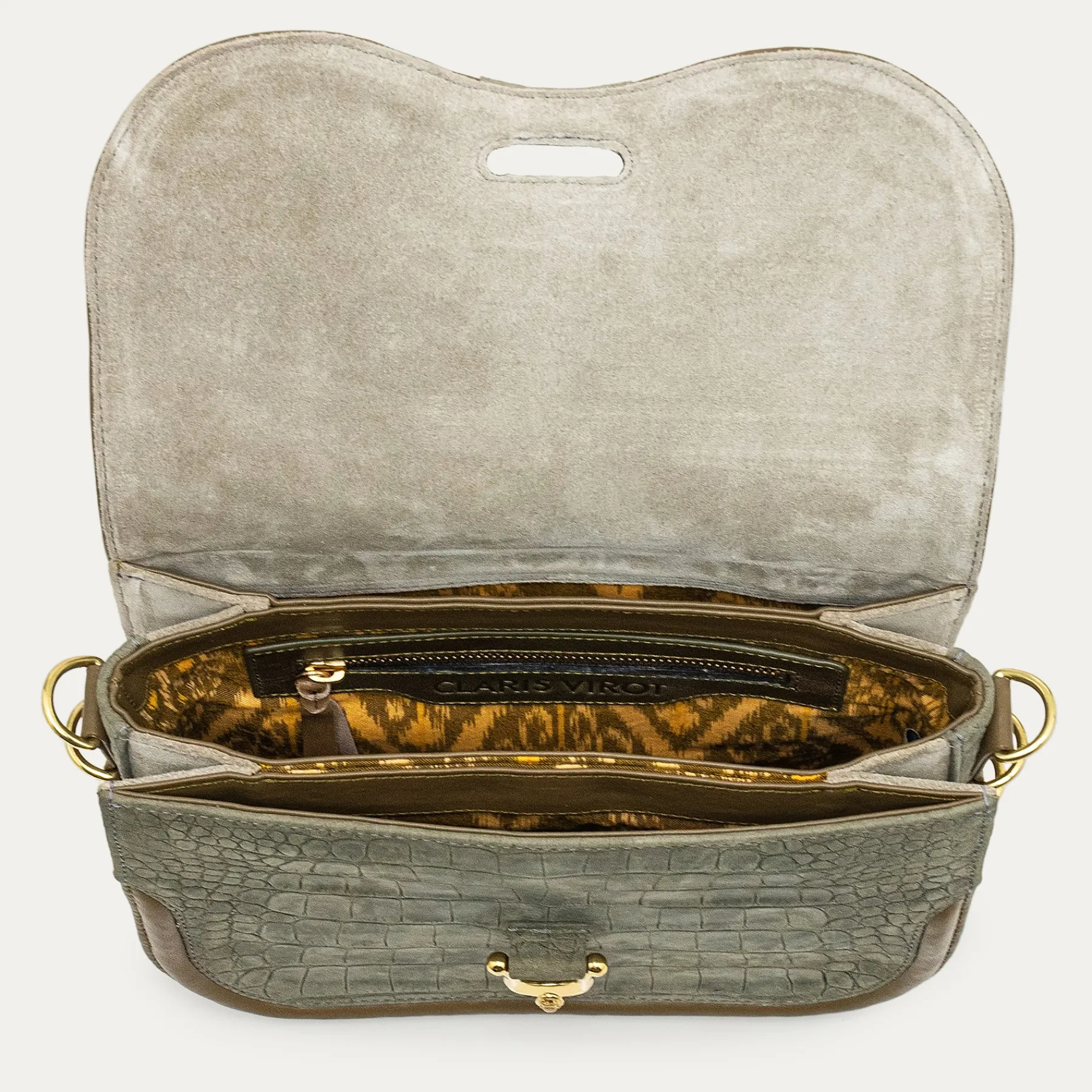Il est doté d’un fermoir bijou et est organisé en trois compartiments à soufflet pour un rangement optimal.