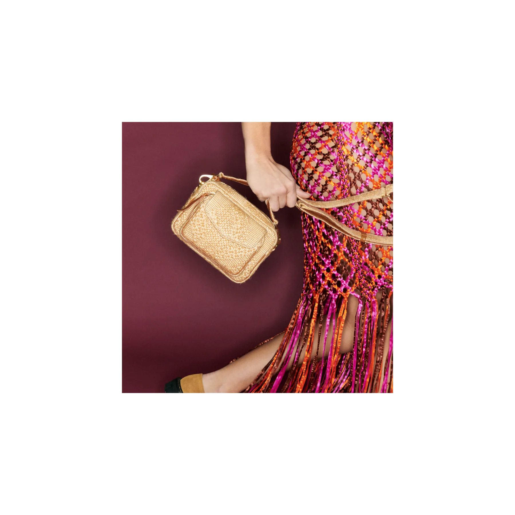 Notre nouveau baby Charly en tissu façon raphia peut se porter croisé ou épaule grâce à sa bandoulière modulable. …