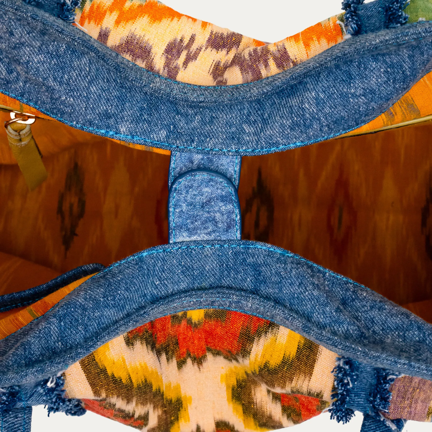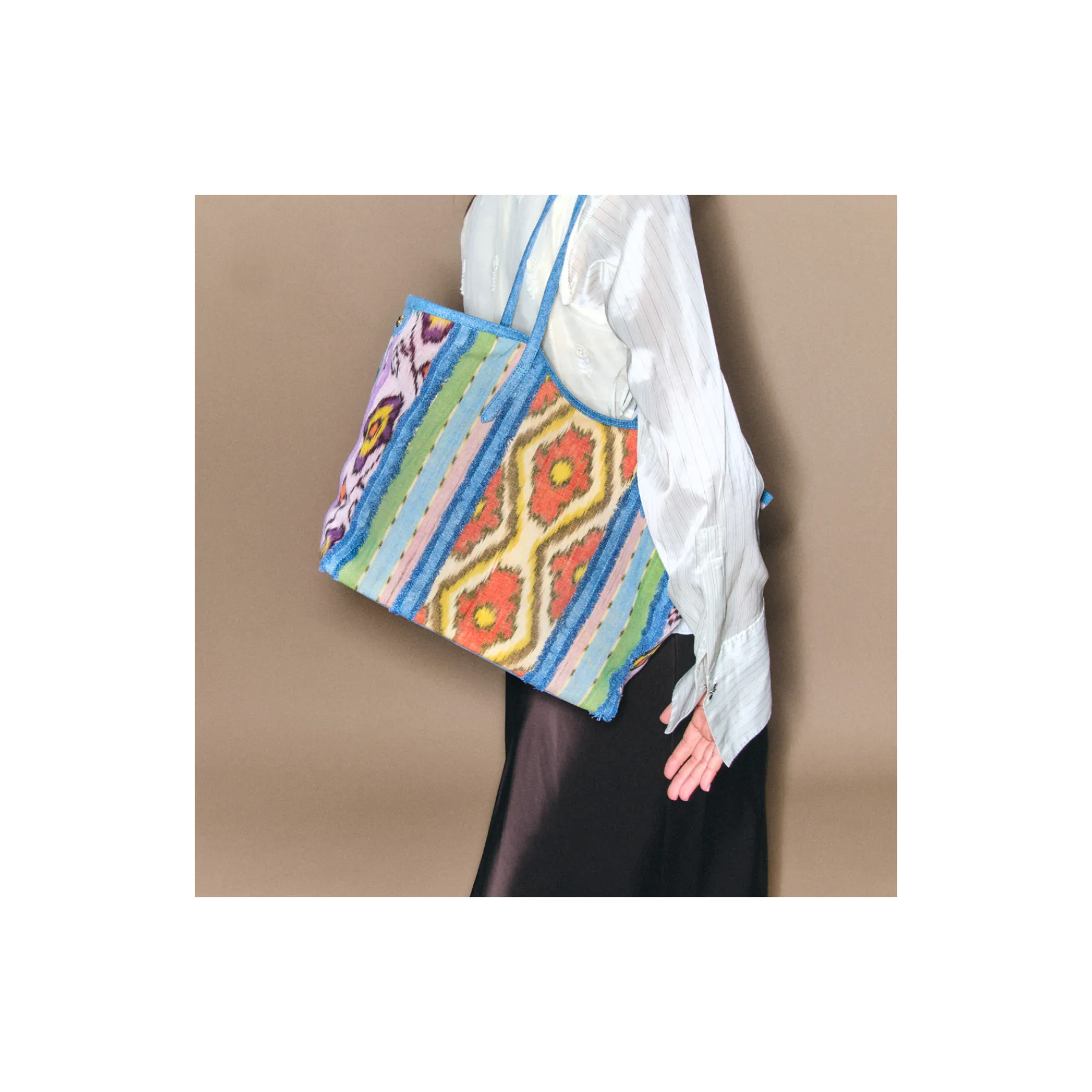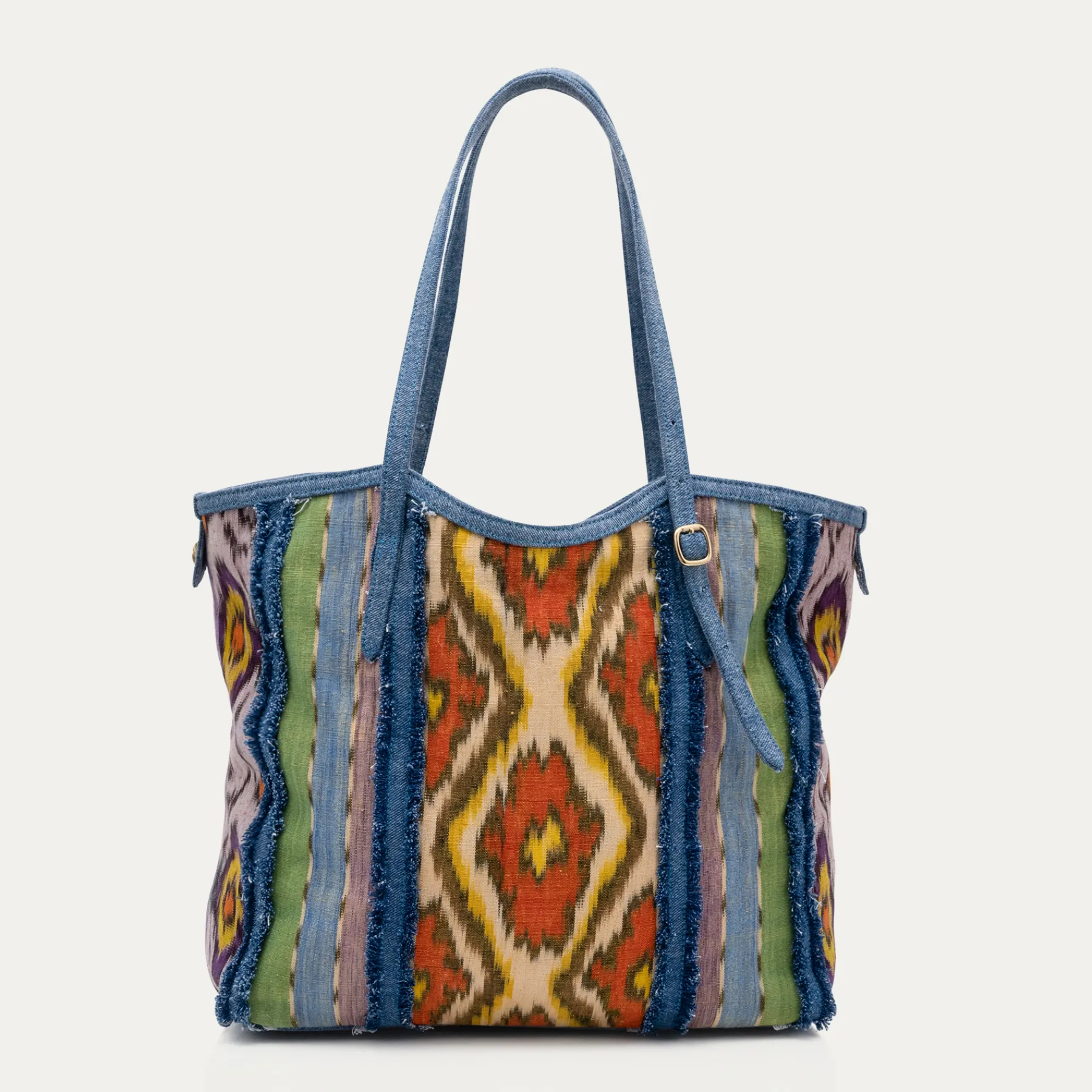 Ce nouveau cabas en tissu patchwork a été pensé afin de vous accompagner en ville et en vacances. Le compartiment central de notre sac India est idéalement organisé, il possède deux poches ouvertes pour accueillir téléphone et documents ainsi qu’une poche zippé interne. Grand et pratique, ce cabas vous permettra de transporter ordinateur et livres.