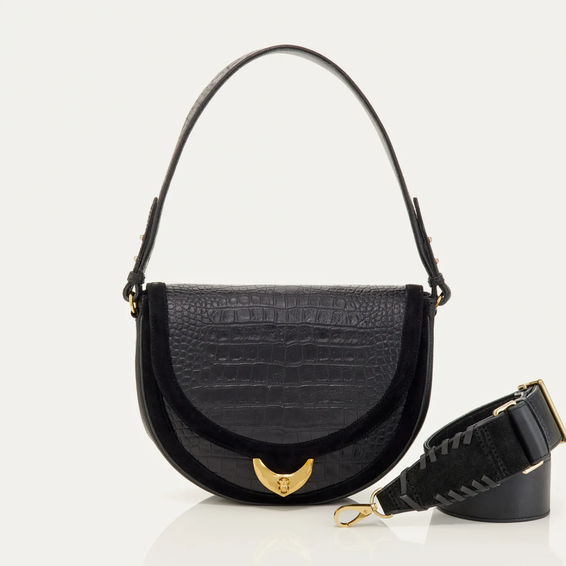– La deuxième avec une anse épaule ET une bandoulière amovible conçue spécifiquement pour ce sac afin de vous permettre de le porter aussi bien à l’épaule qu’en cross body, selon vos envies et sorties!