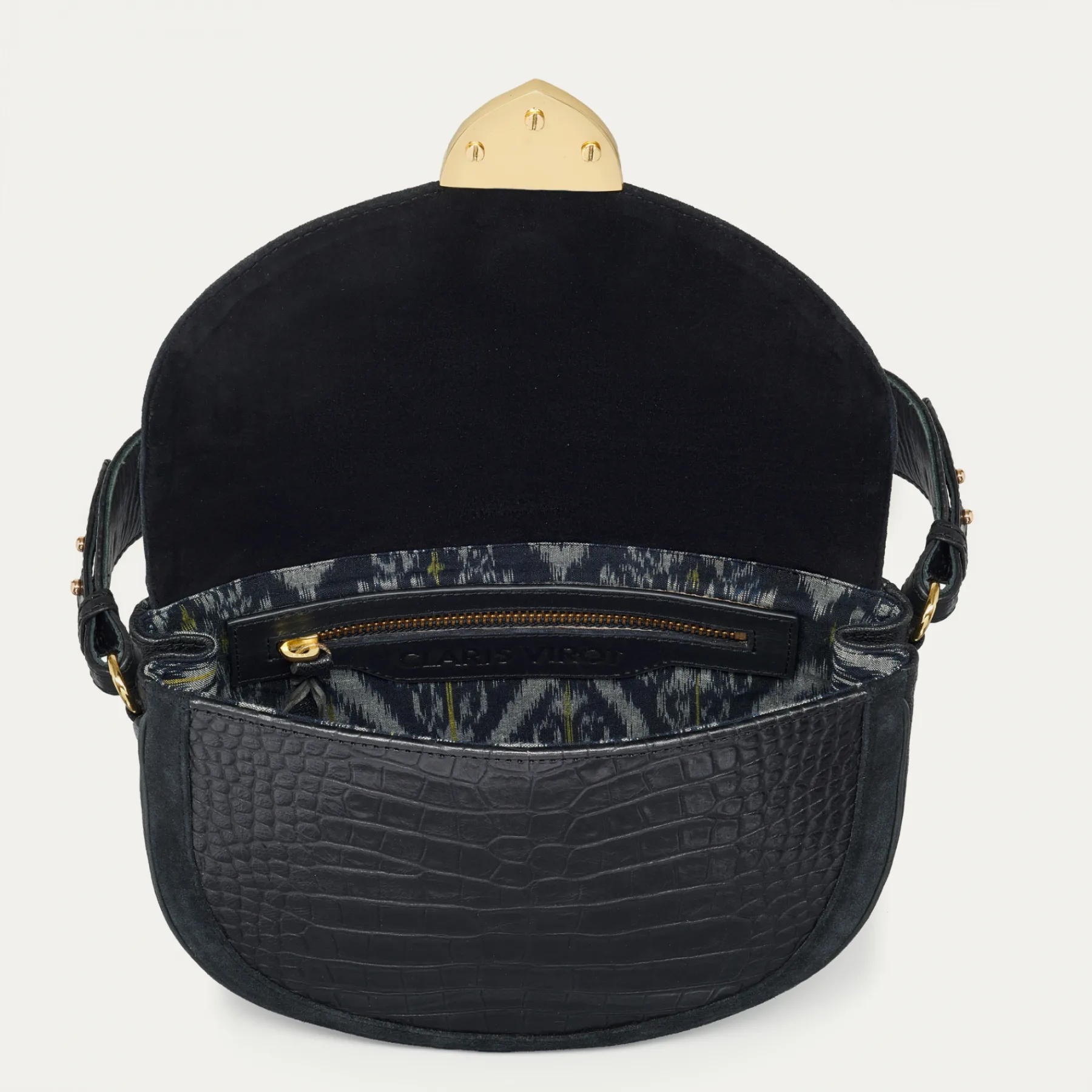 Notre nouveau sac besace bi-matière Big Victoria est composé de croco et de cuir embossé. Victoria se ferme à l’aide d’un fermoir à embout métallique finement martelé et orné d’un petit scarabée. Plus grand que le Victoria mais également organisé en un seul compartiment avec une poche interne zippée, le Big Victoria pourra transporter tous vos effets personnels.