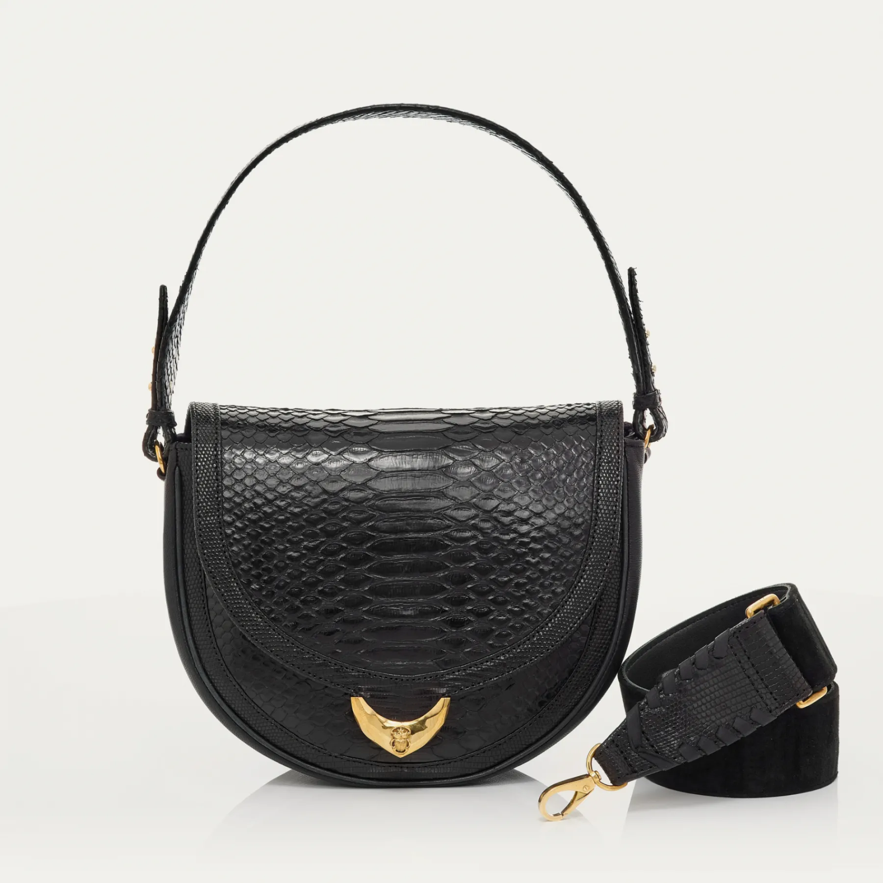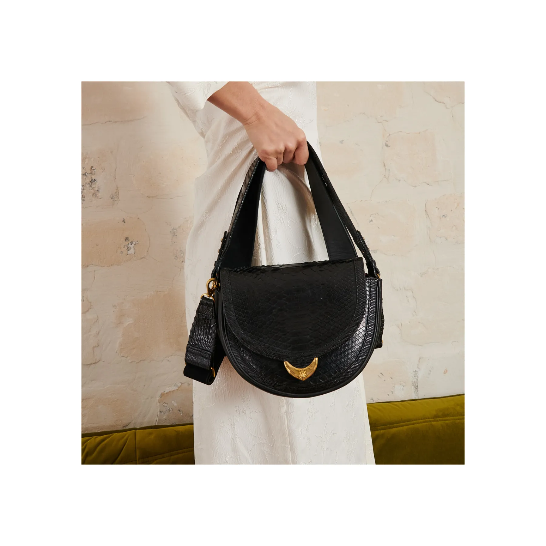 – La deuxième avec une anse épaule ET une bandoulière amovible conçue spécifiquement pour ce sac afin de vous permettre de le porter aussi bien à l’épaule qu’en cross body, selon vos envies et sorties!
