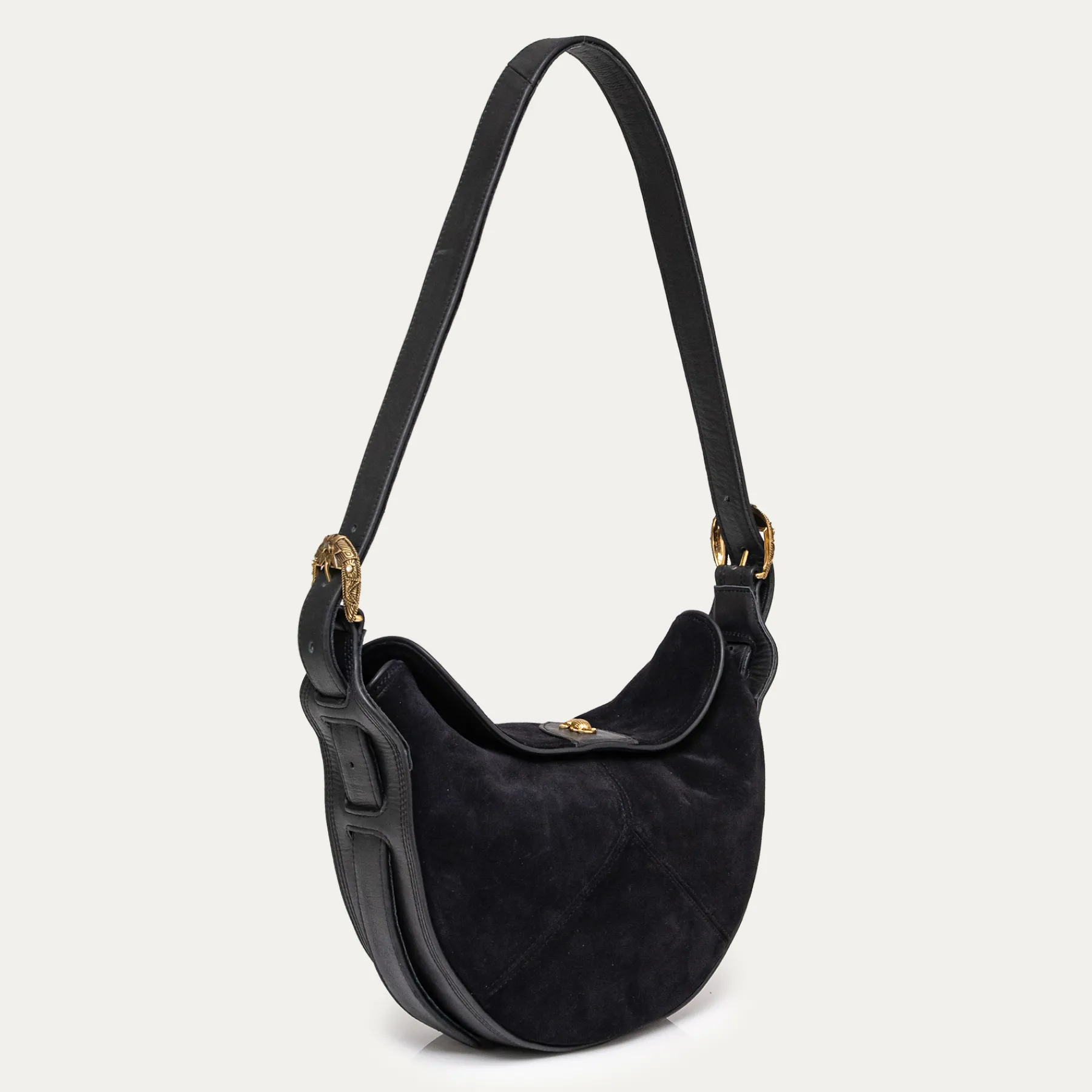 Notre nouveau sac Estelle est une besace en veau velours. Il possède une longue bandoulière réglable, qui permet un porté très tombant ou très court et proche du corps.