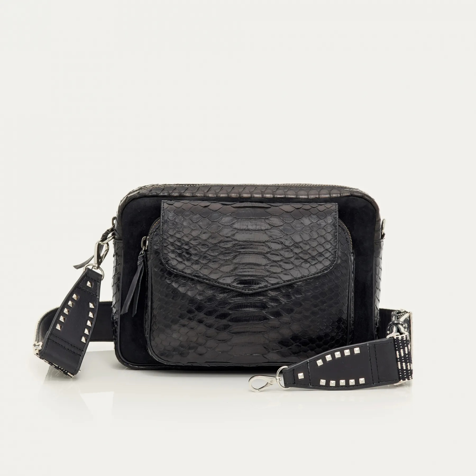 Plus grand que le Big Charly, le Jumbo Charly peut se porter croisé ou épaule. Réalisé en python et cuir suédé, il est organisé en un compartiment avec une poche à l?avant. Notre Jumbo Charly est muni d?une bandoulière tissé à la main modulable ainsi que de nombreux espaces de rangements qui vous permettra de transporter de nombreux effets personnels tels que des livres et trousses.