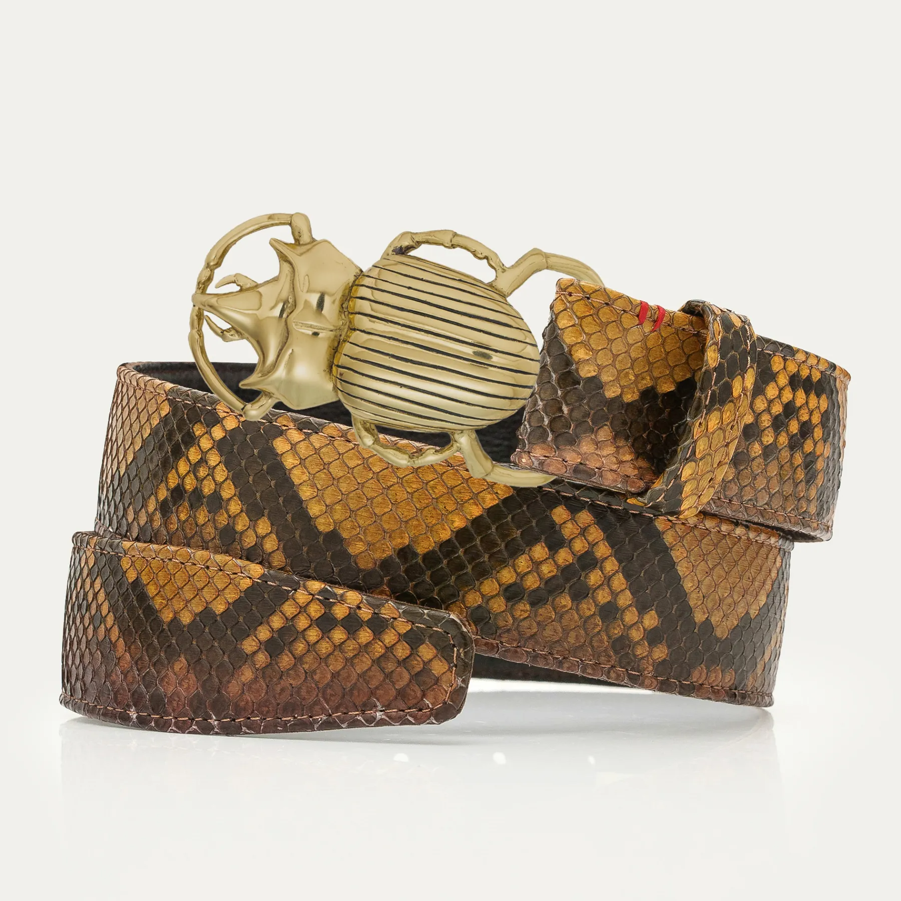 Ce ceinturon, doublé de cuir est orné d’une magnifique boucle en forme de scarabée. Elle donne un look fort aux tenues les plus simples.