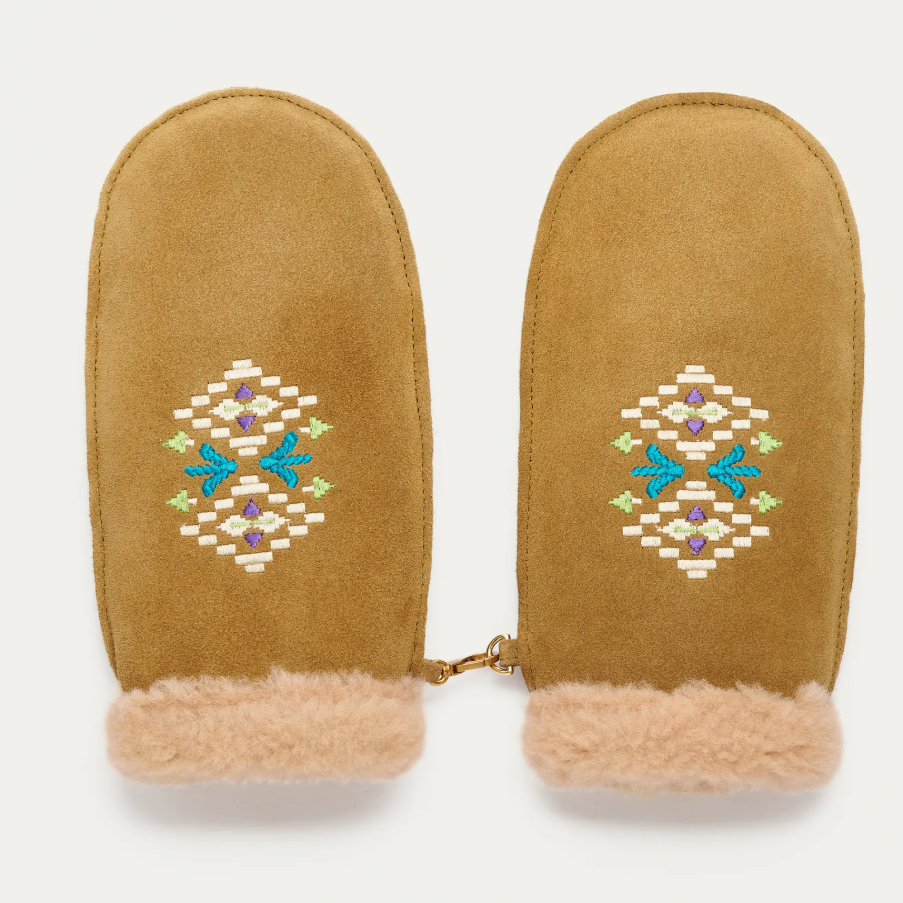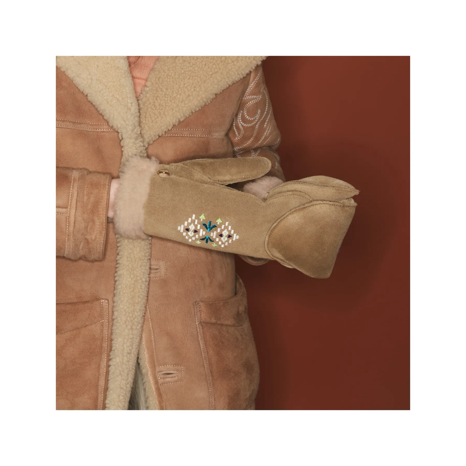 Les nouvelles moufles Claris Virot seront vos alliées pendant l’hiver. Réalisées en tissu doux effet daim brodé et doublées de shearling, cette paire assure un ajustement idéal.