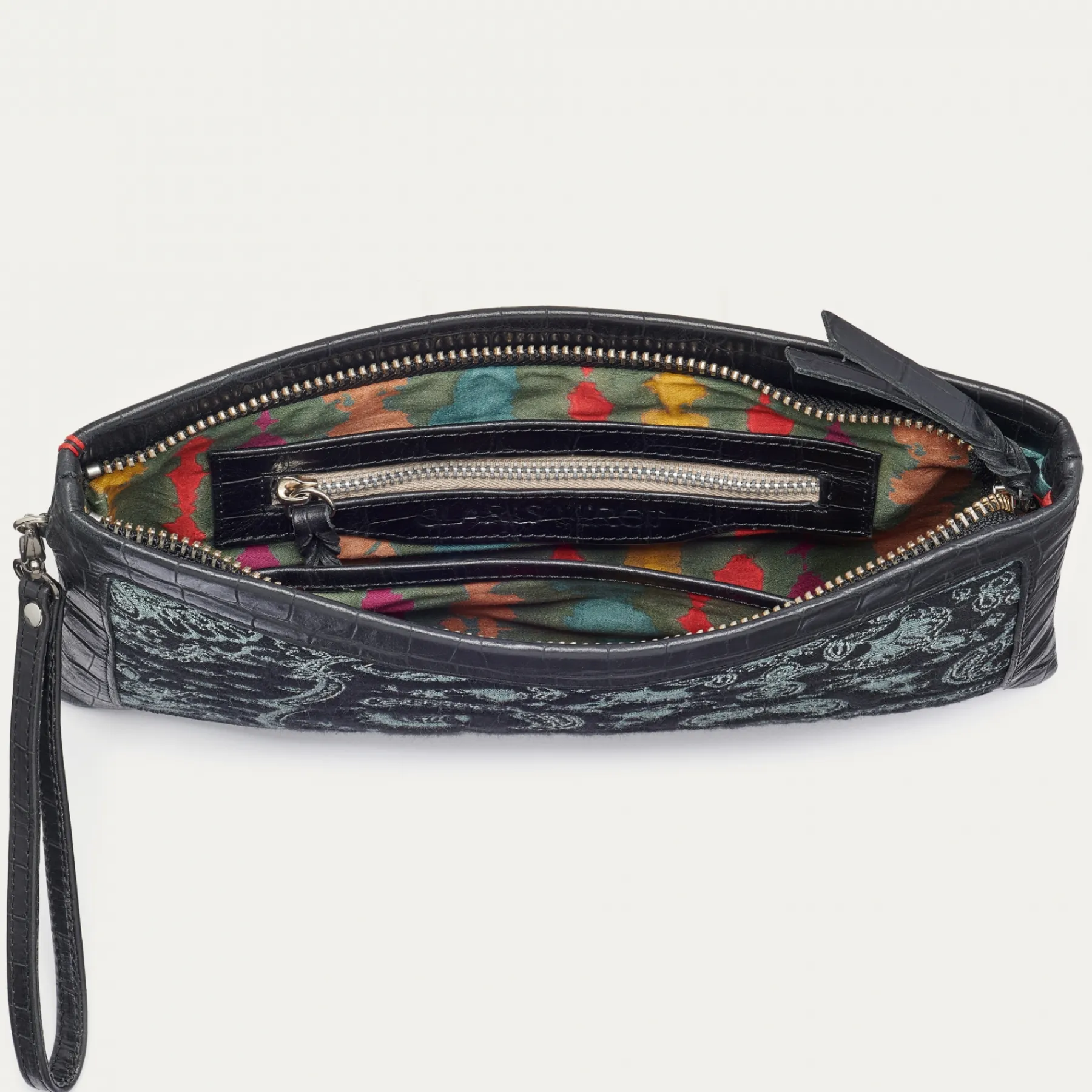 Notre pochette en cuir souple et tissu cachemire est incontestablement un indémodable ! Cet accessoire classique vous permet de ranger vos indispensables afin d’optimiser le rangement de votre sac. Lou peut également se porter à la main grâce à sa dragonne en cuir. Élégante et pratique, Lou traverse les saisons et générations.