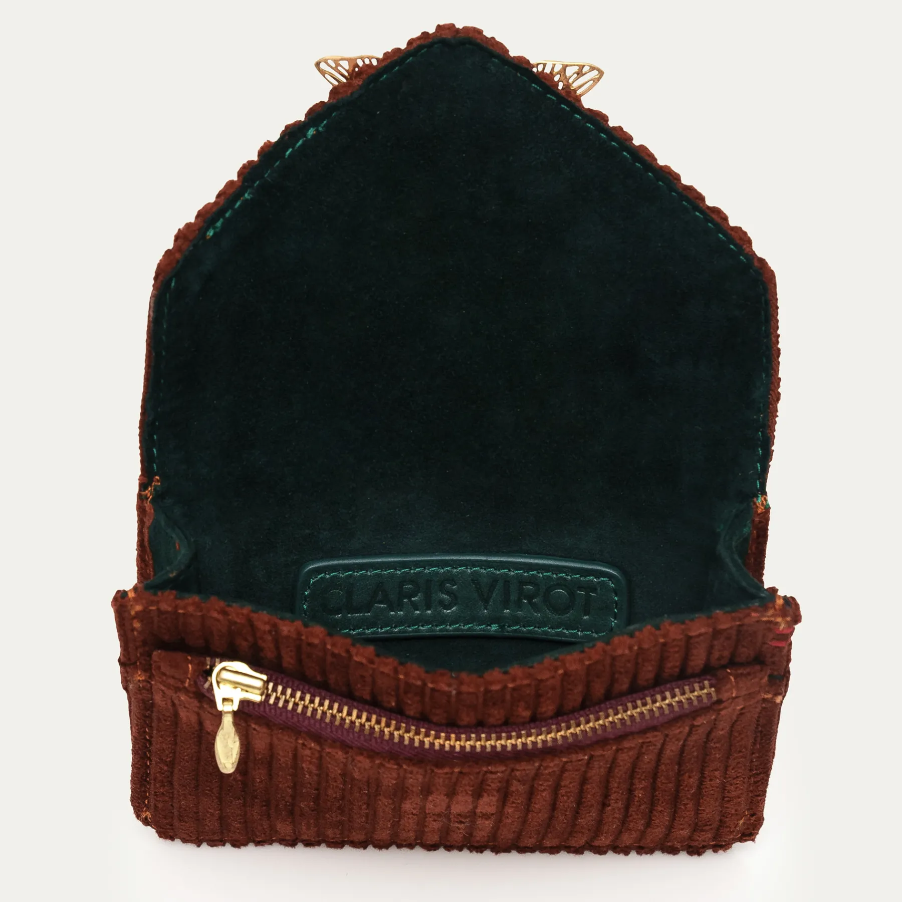 Cette petite pochette en python qui prend la forme d’une enveloppe est ornée d’un fermoir en forme de scarabée en laiton. Parfaite pour garder tous vos petits papiers et votre monnaie grâce à ses différents compartiments, elle se glissera facilement dans tous vos sacs.