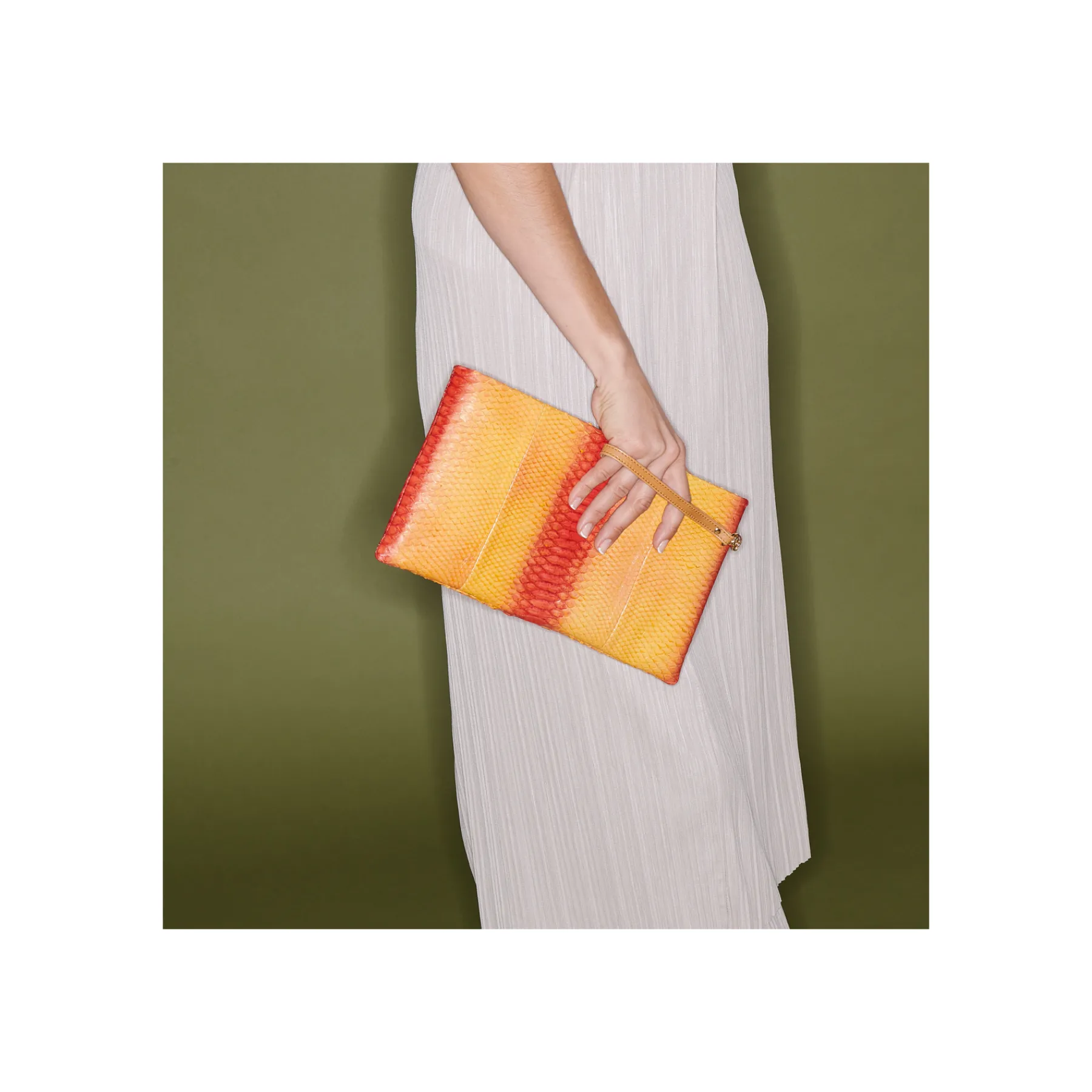 Notre pochette souple en python est incontestablement un indémodable ! Cet accessoire classique vous permet de ranger vos indispensables afin d’optimiser le rangement de votre sac. Lou peut également se porter à la main grâce à sa dragonne en cuir. Élégante et pratique, Lou traverse les saisons et générations.