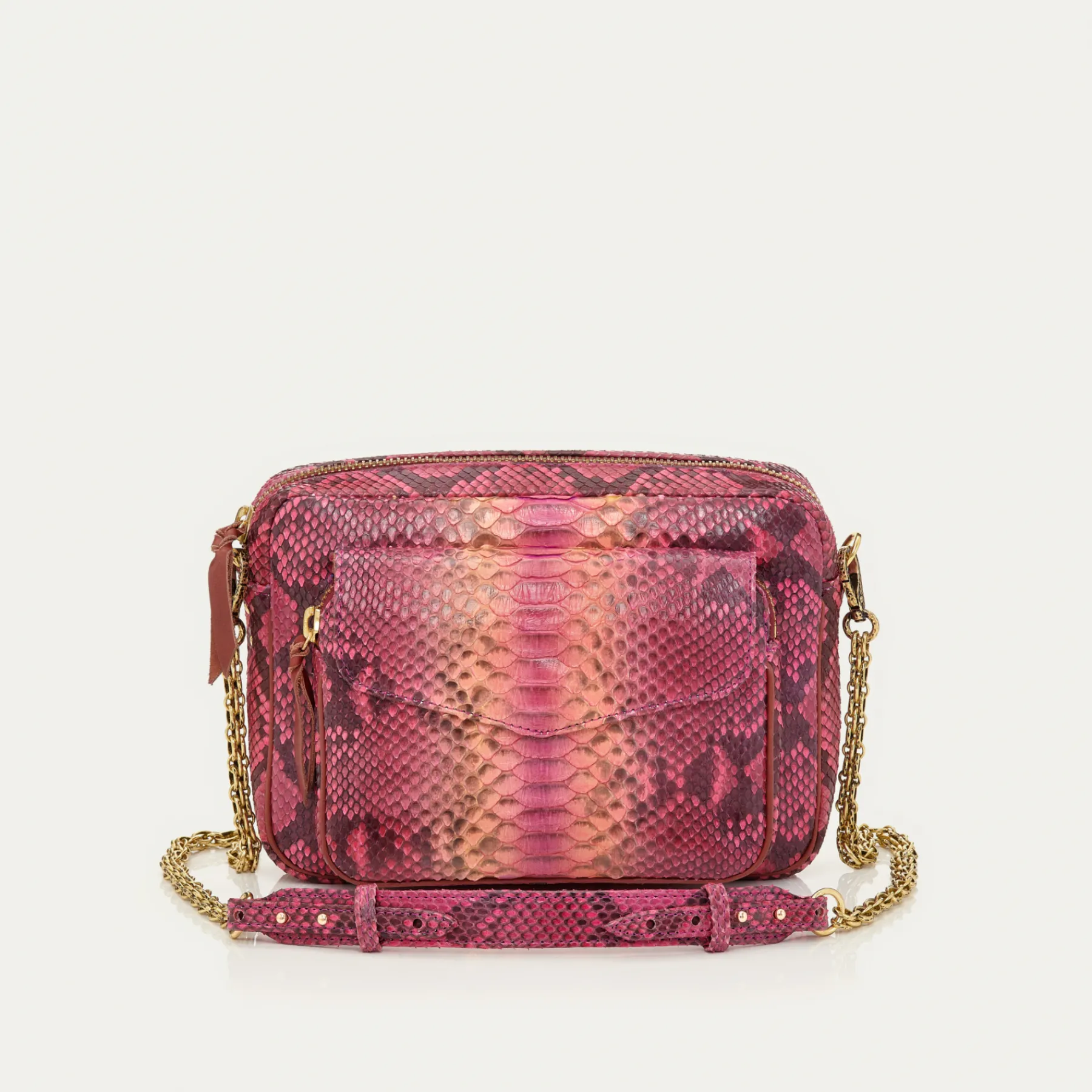 Ce sac porté croisé ou épaule est organisé en un compartiment avec une poche à l’avant. Notre Big Charly en python est muni d’une chaîne artisanale et de nombreux espaces de rangements. Plus grand que le Charly, le Big Charly vous permettra de transporter encore plus d’effets personnels ! Notre Big Charly trouvera immédiatement sa place dans votre dressing !