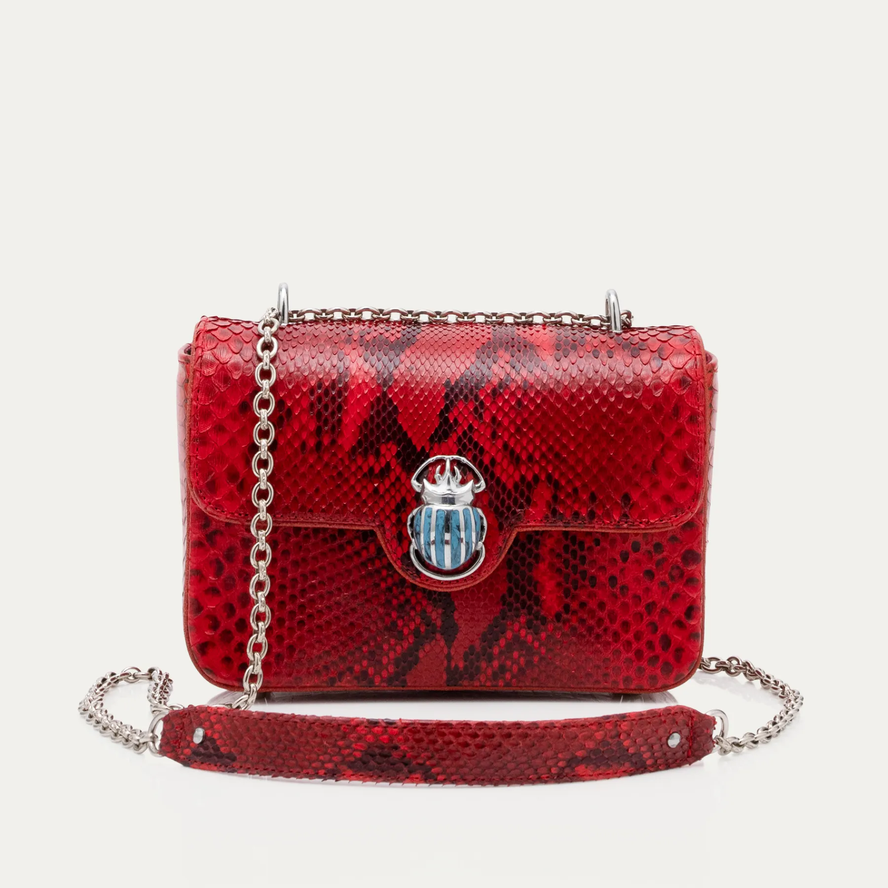 Ce sac en python peut se porter épaule ou croisé, il est doté d’un fermoir bijou ainsi que d’une chaîne artisan…