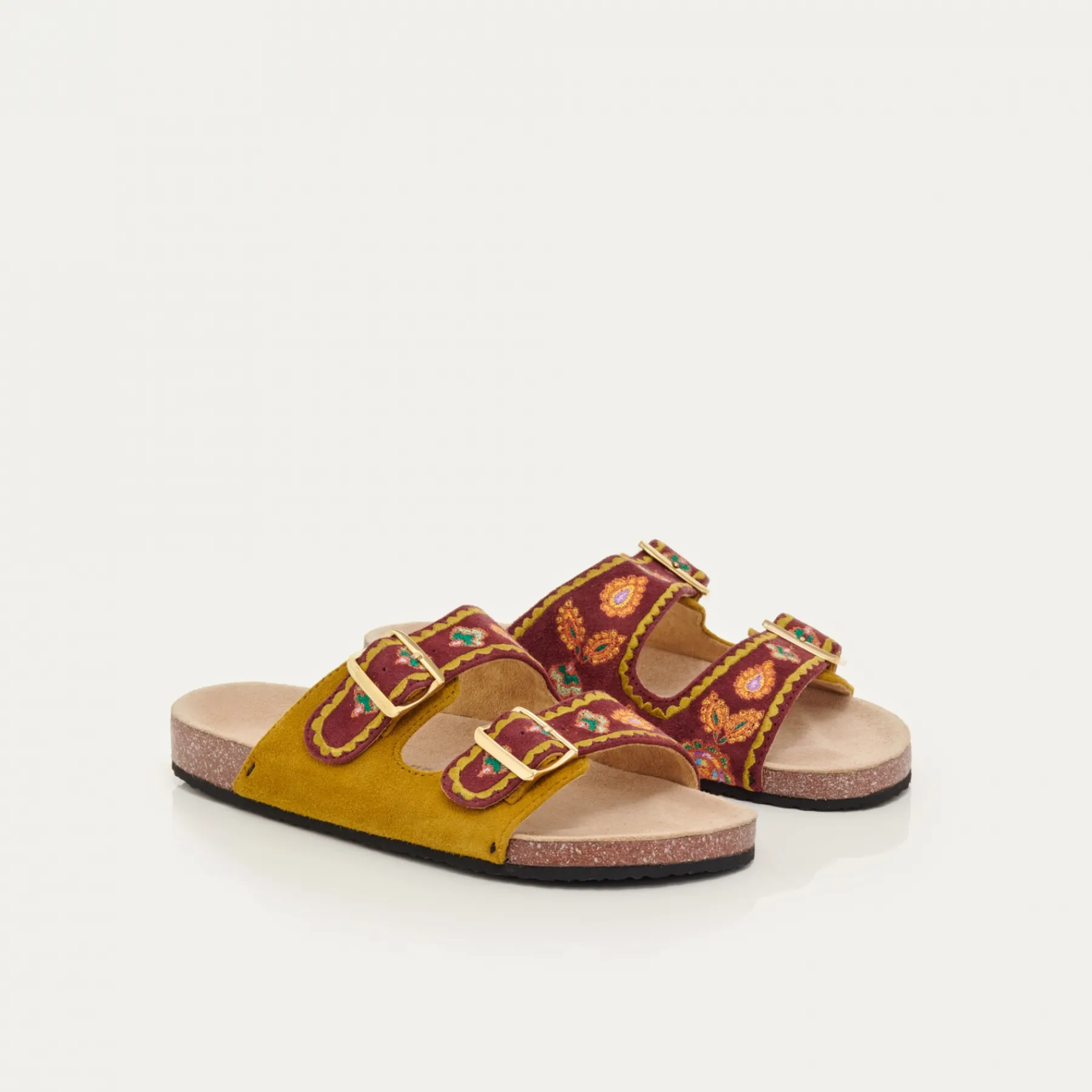 Nos sandales ajustables en cuir suédé et aux broderies cachemire sont doublées cuir et ornées de deux boucles c…
