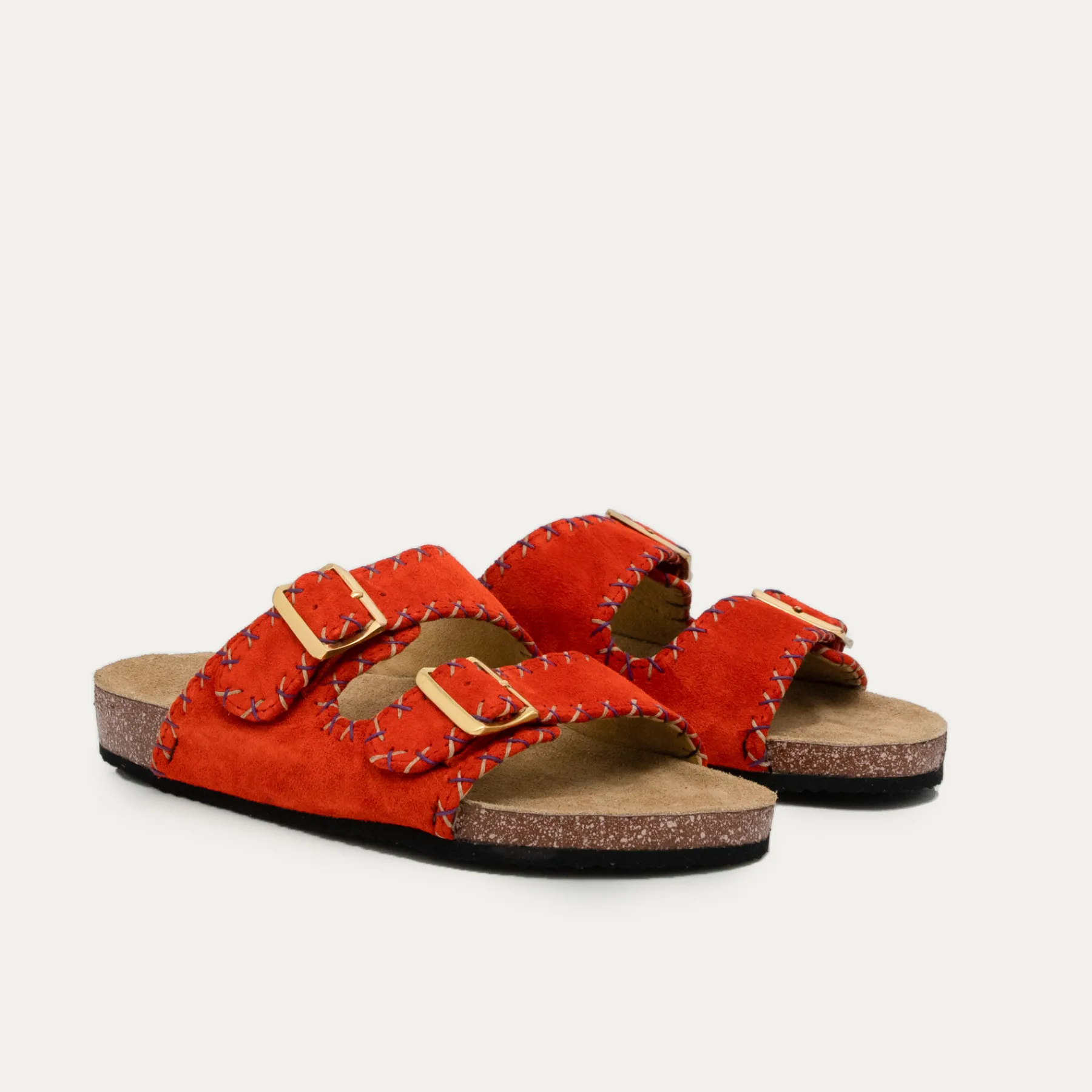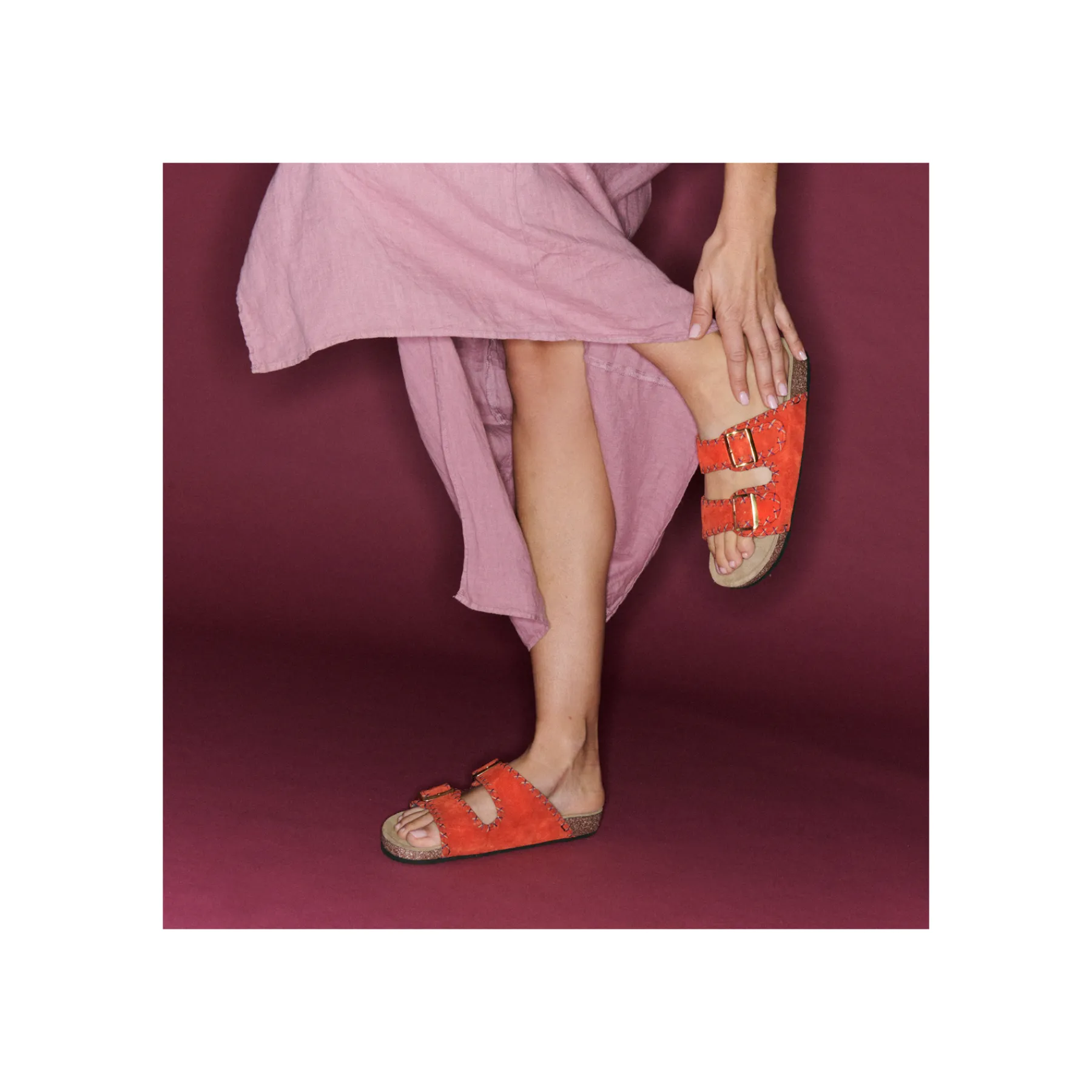 Nos sandales ajustables en Veau Velours Goyave sont doublées cuir et ornées de deux boucles carrées en métal doré. Confortables et intemporelles nos Odette vont vite devenir vos nouvelles indispensables !