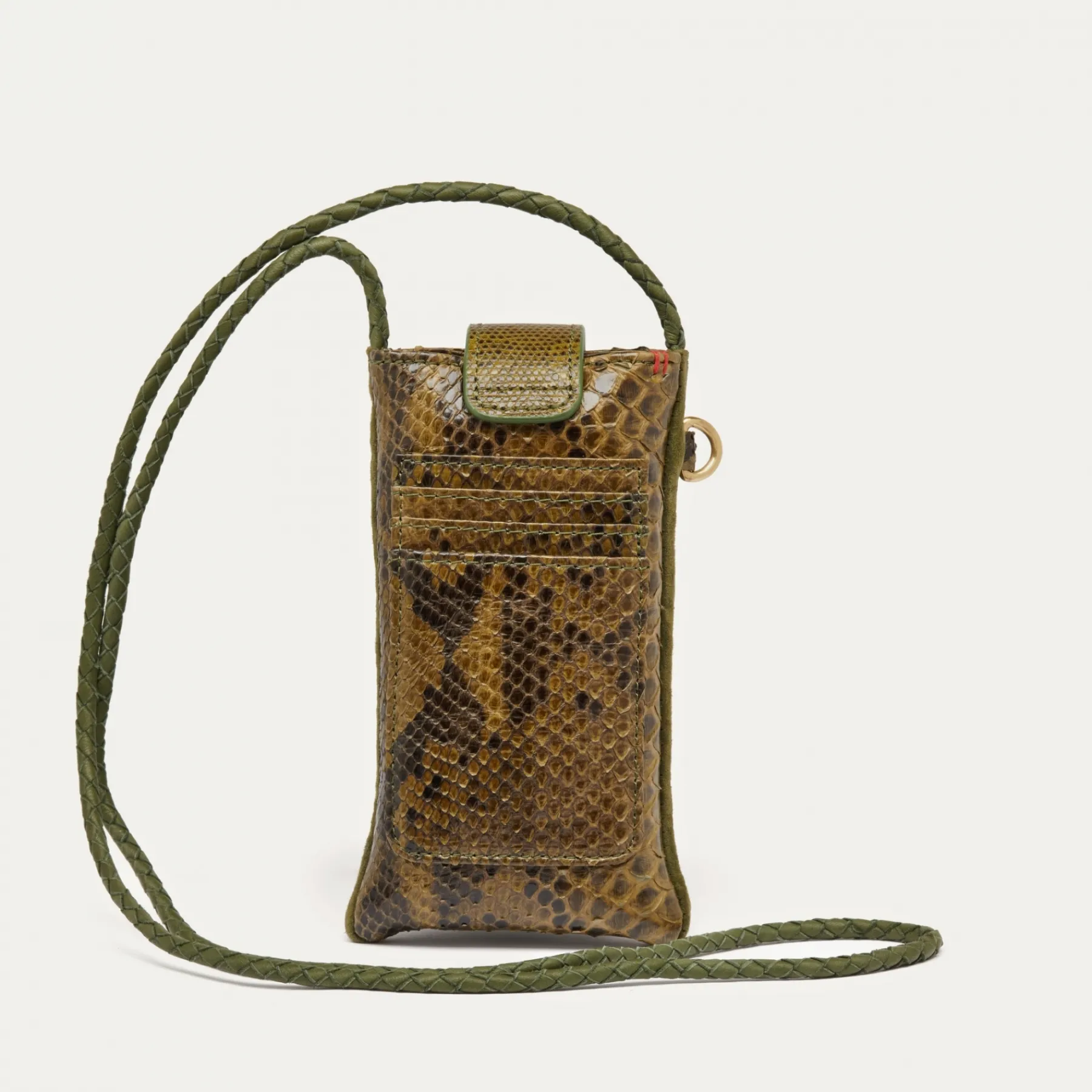 Cet étui en python et cuir suédé conçue afin de transporter votre téléphone est réalisée à la main. Le double Marcus est doté de deux compartiments. La poche principale vous permettra d’accueillir votre smartphone et la poche avant vos lunettes. Ces deux poches se ferment à l’aide d’un rabat aimanté, orné d’un scarabée doré. À l’arrière, 3 fentes vous permettront d’y ranger vos différentes cartes.