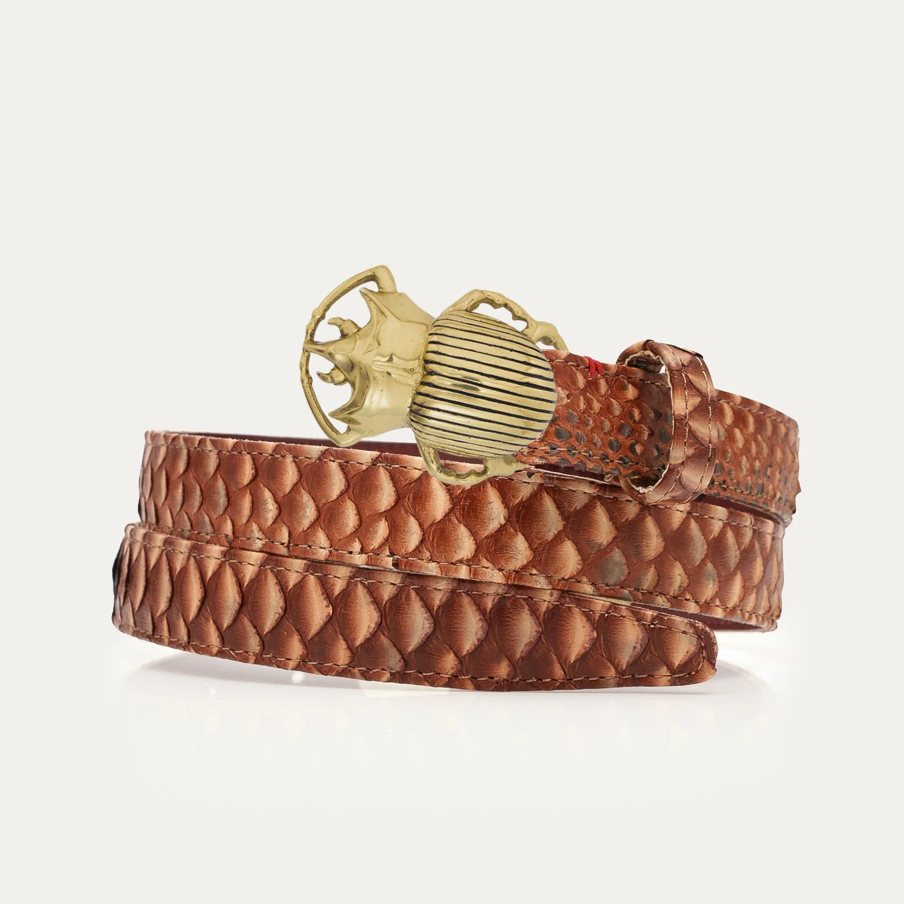 Ce ceinturon plus fin en python est doublé de cuir et orné d’une magnifique boucle en forme de scarabée. Elle donne…