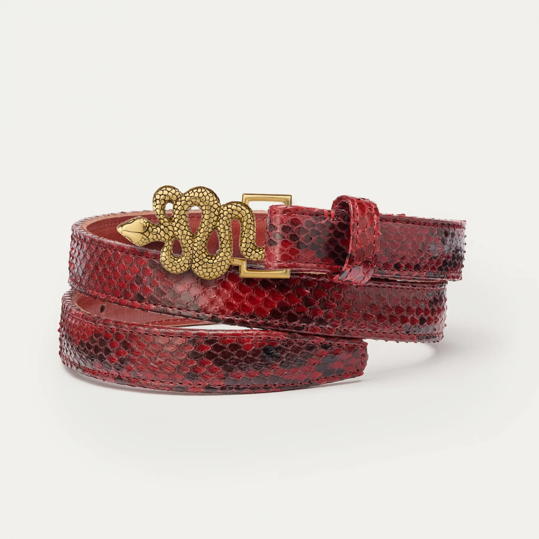 Ce ceinturon en python doublé de cuir est orné d’une magnifique boucle en forme de serpent. Elle donne un look fort au…