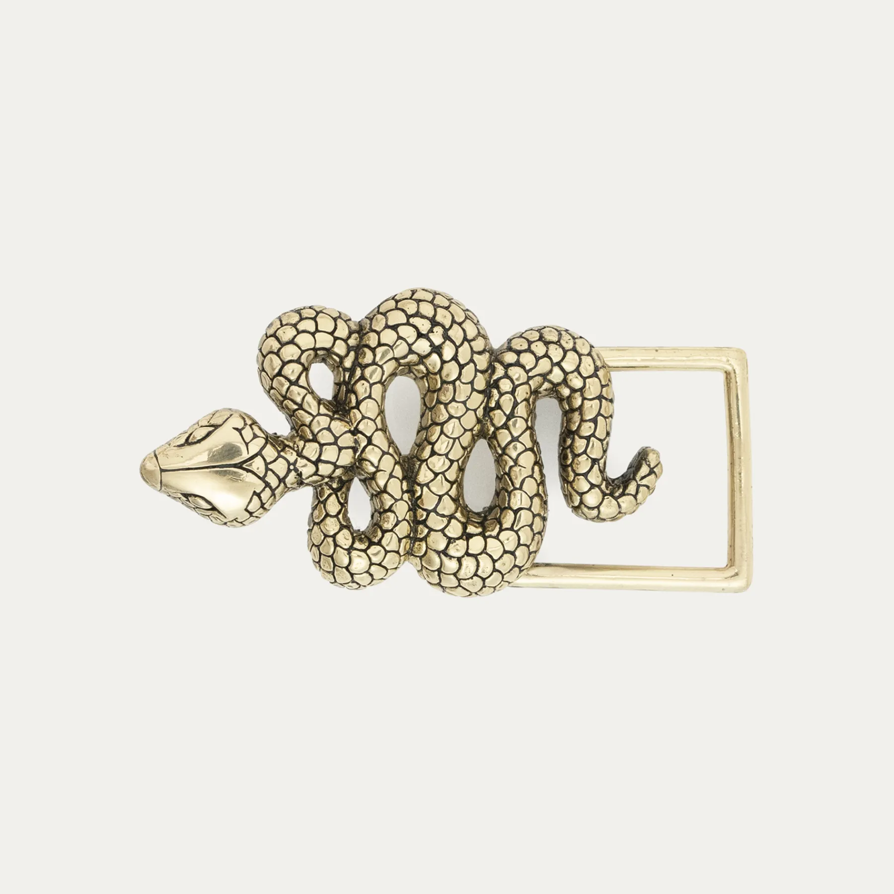 Ce ceinturon en python doublé de cuir est orné d’une magnifique boucle en forme de serpent. Elle donne un look fort au…