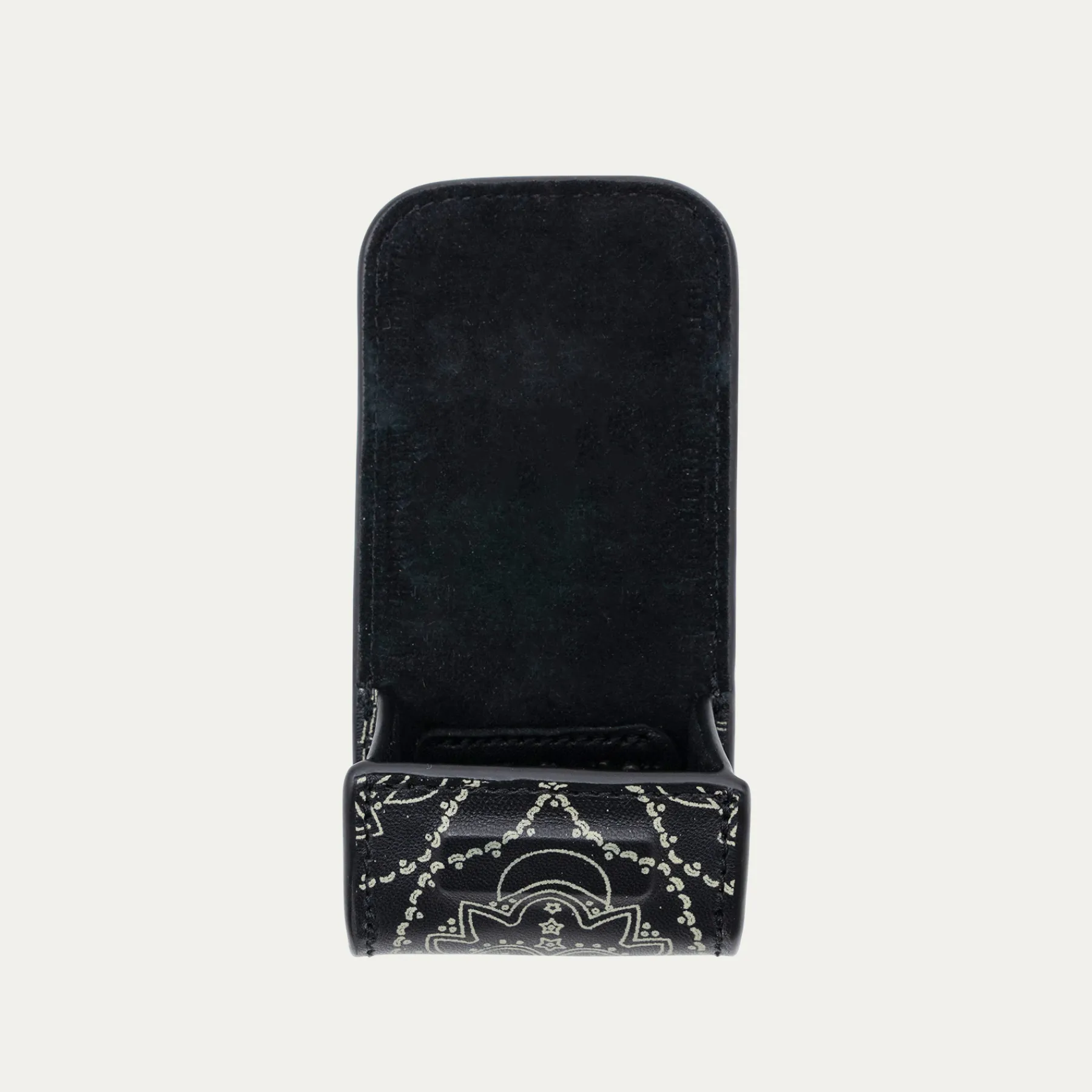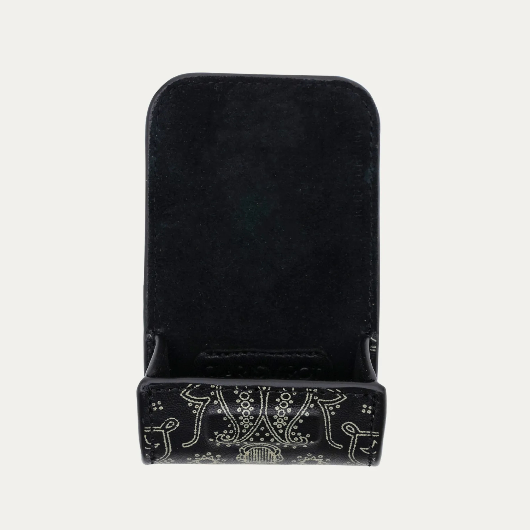 Notre premier étui à AirPods Jamie entièrement composé de python est orné d’une beetle dorée à l’avant. Son mousqueton vous permettra de l’accrocher aussi bien à vos passants de pantalon, qu’à votre sac ou étui de téléphone portable, tel que notre Double Marcus.