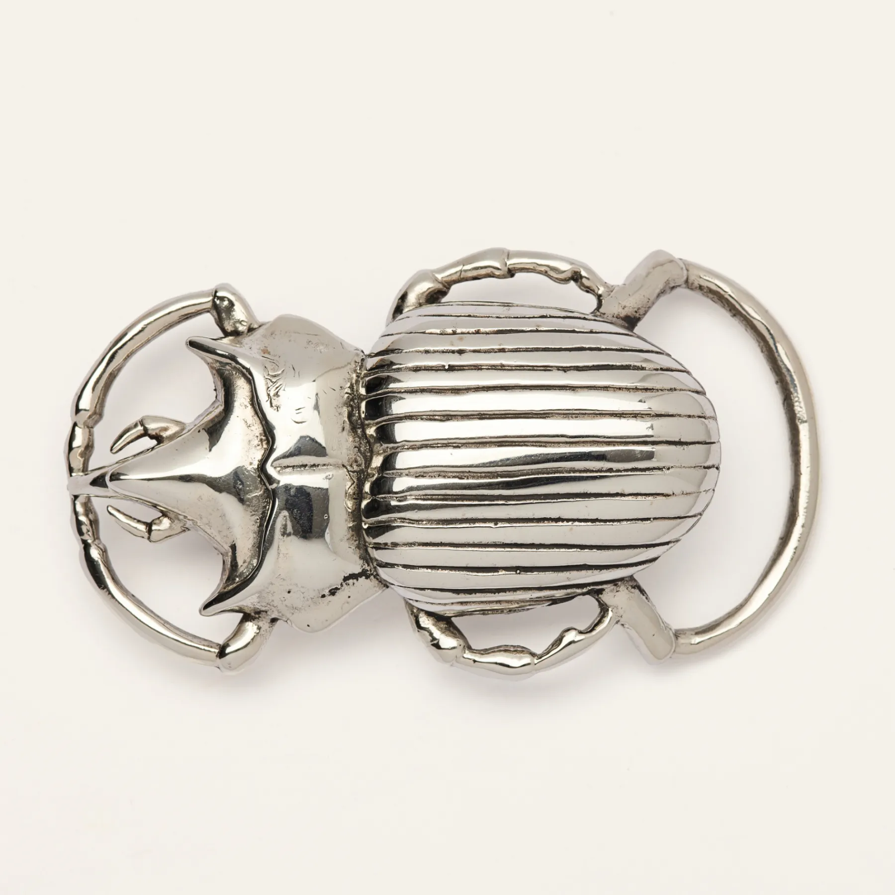Ce ceinturon, doublé de cuir est orné d’une magnifique boucle en forme de scarabée. Elle donne un look fort aux tenue…