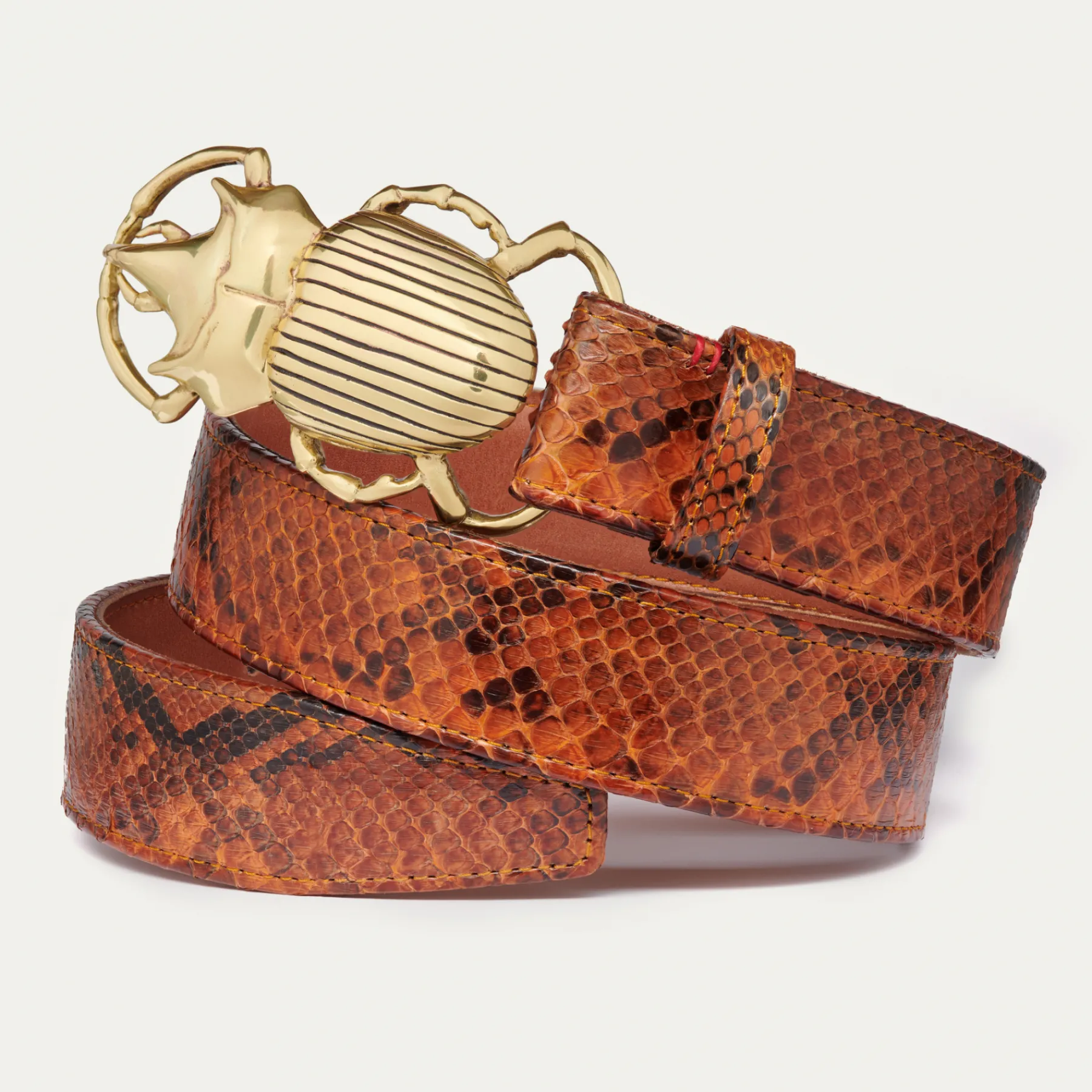 Ce ceinturon, doublé de cuir est orné d’une magnifique boucle en forme de scarabée. Elle donne un look fort aux tenues les plus simples.