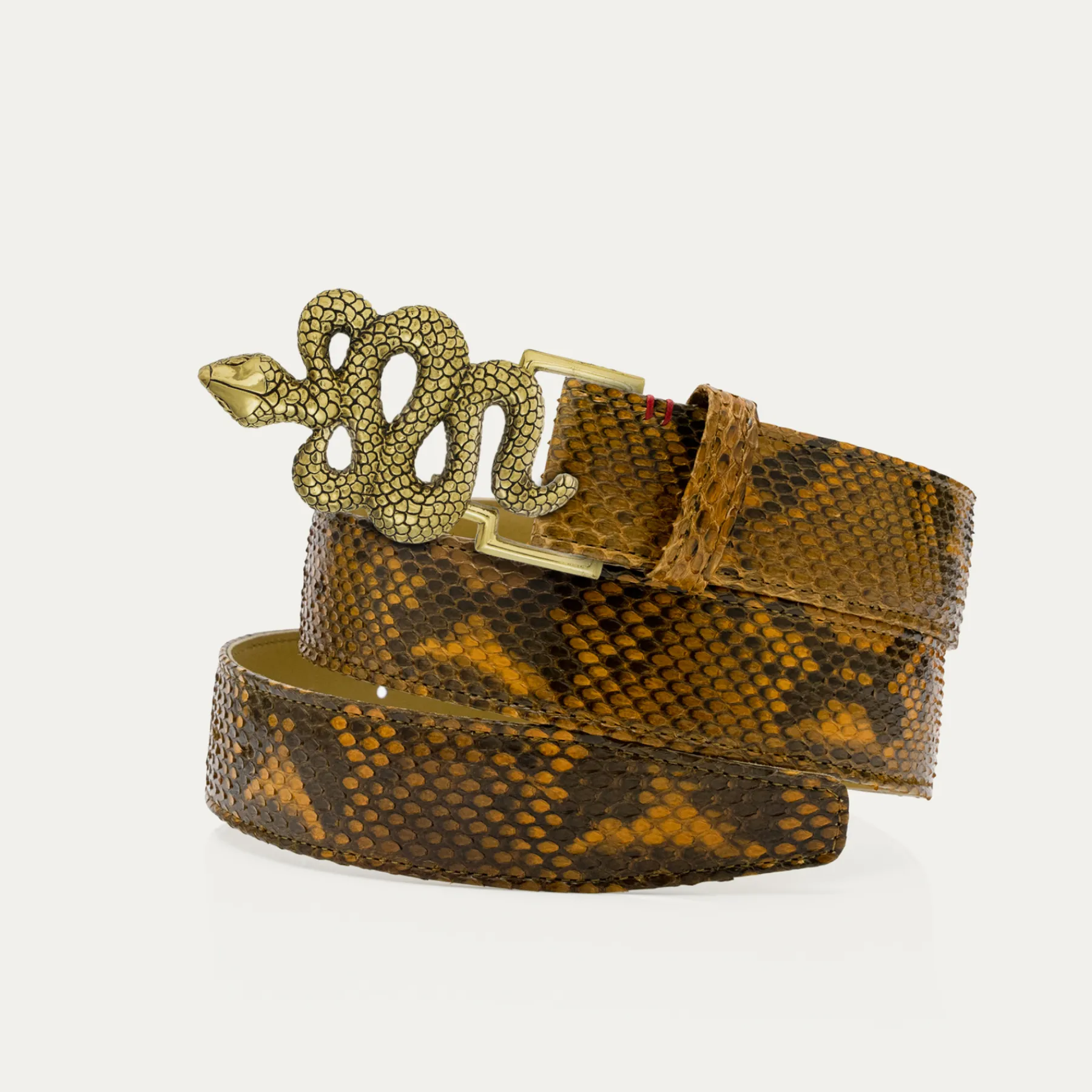 Ce ceinturon doublé de cuir est orné d’une magnifique boucle en forme de serpent. Elle donne un look fort aux tenues l…