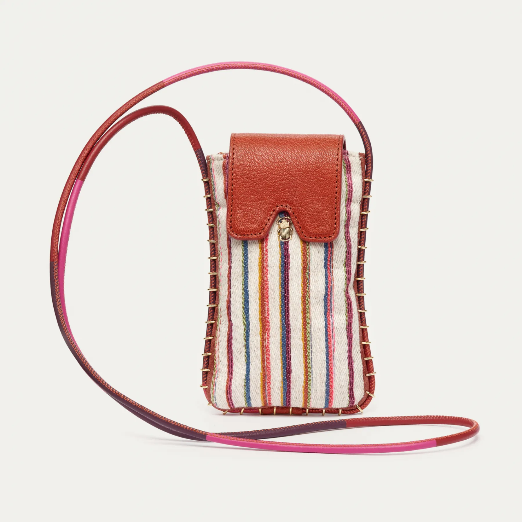 Notre étui à lunettes Émile a été réalisé à la main et confectionné en cuir et tissu Tsumugi. Doté d’une poche principale, il se ferme à l’aide d’un rabat aimanté, orné d’un mini scarabée. Émile possède également 3 fentes à l’arrière de sa pochette, afin que vous puissiez ranger vos cartes sans difficulté. Grâce à sa corde en cuir, vous pourrez le porter en cross body ou bien autour du cou.