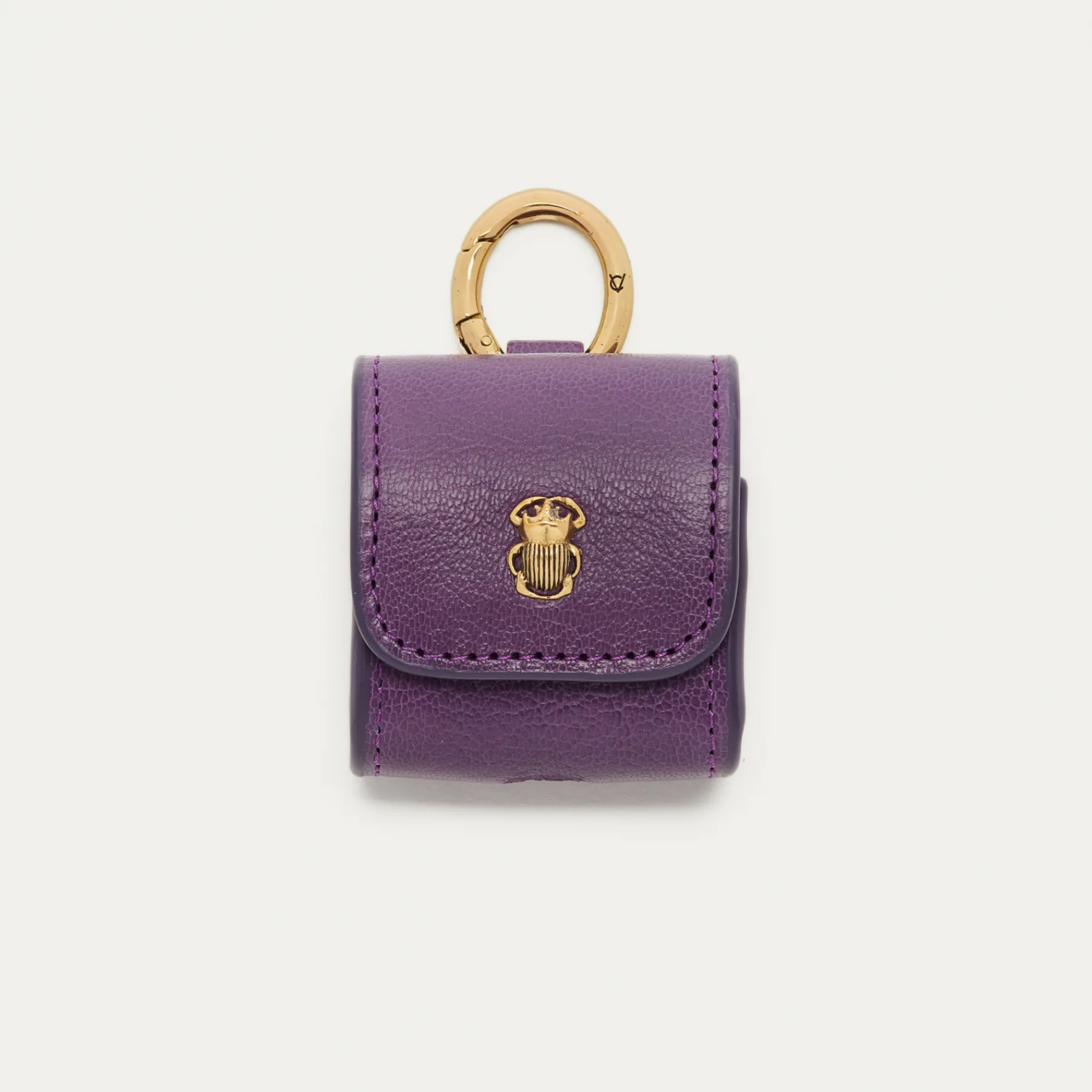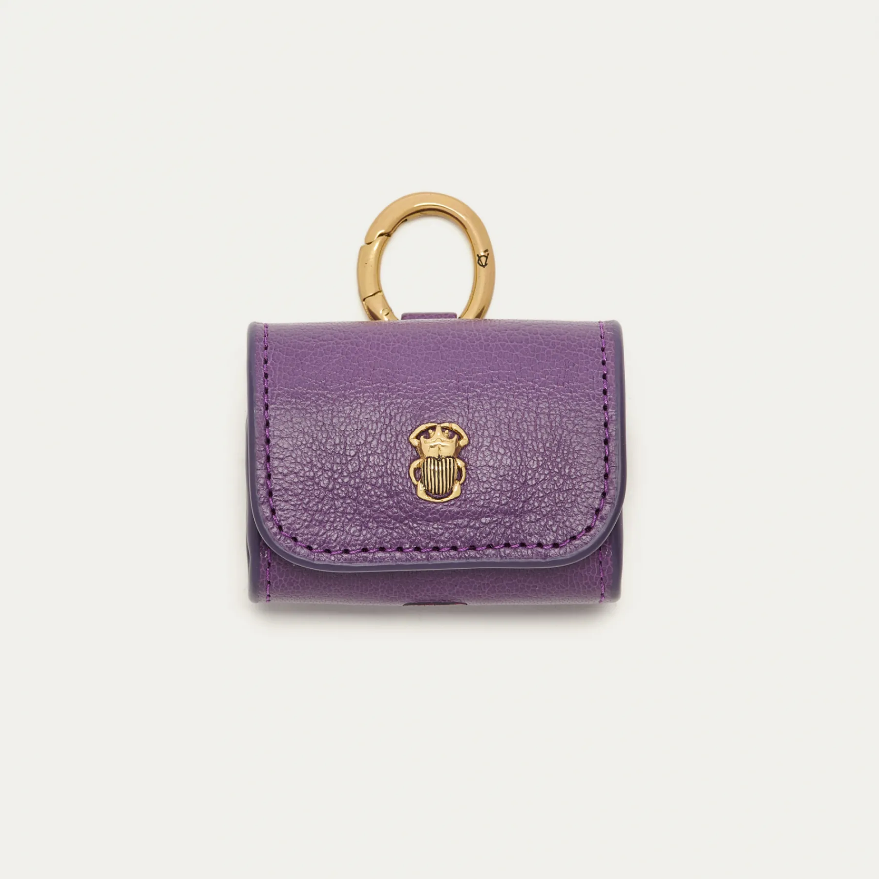 Notre premier étui à AirPods Jamie entièrement composé de cuir grainé est orné d’une beetle dorée à l’avant. Son mousqueton vous permettra de l’accrocher aussi bien à vos passants de pantalon, qu’à votre sac ou étui de téléphone portable, tel que notre Double Marcus.