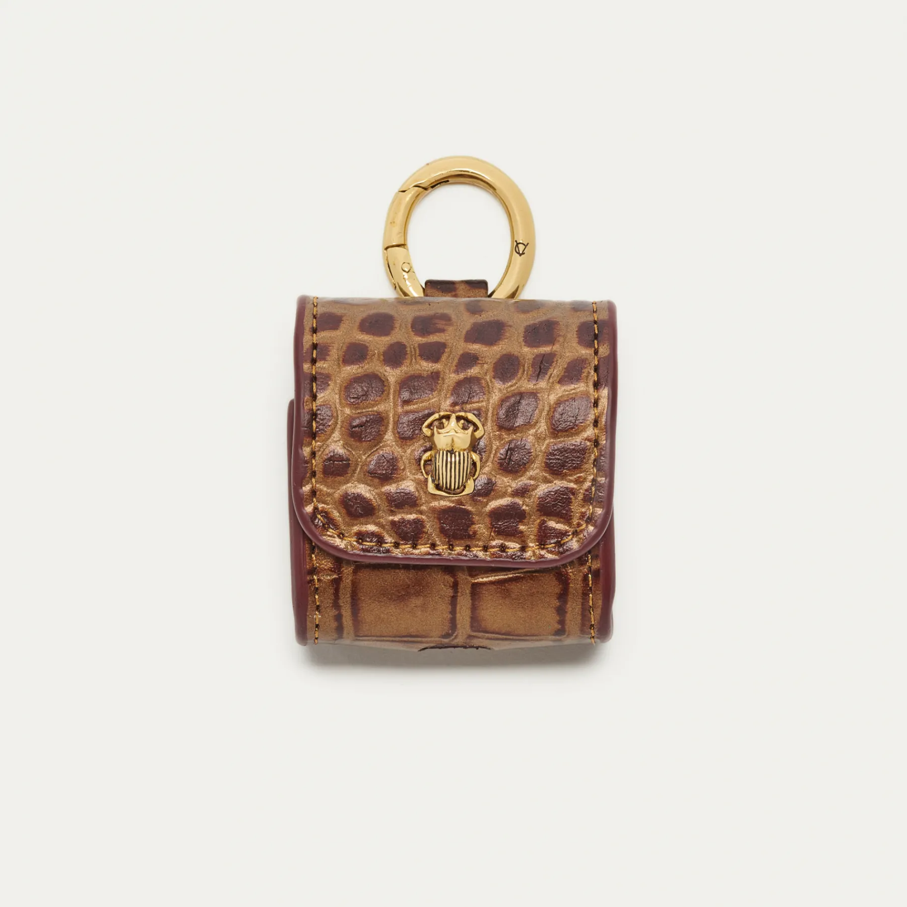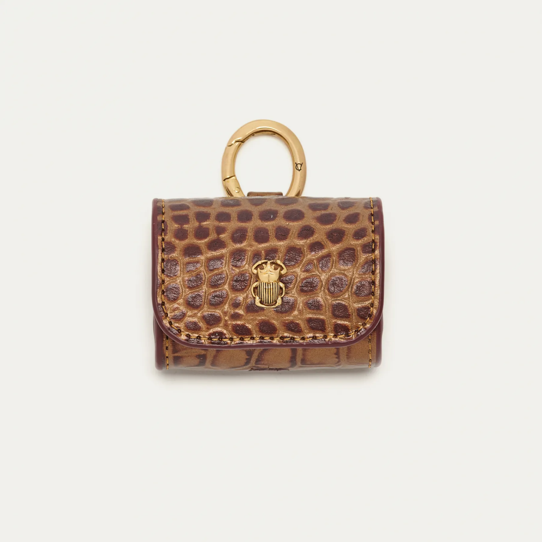 Notre premier étui à AirPods Jamie entièrement composé de cuir embossé croco écorce est orné d’une beetle do…