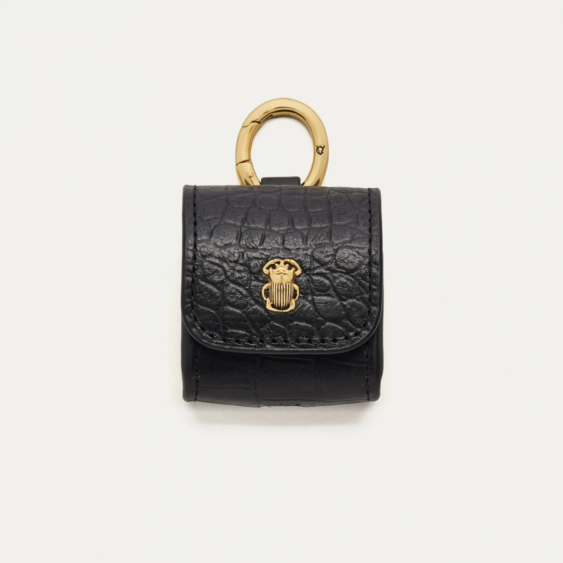 Notre premier étui à AirPods Jamie entièrement composé de cuir embossé crocro est orné d’une beetle dorée à l’av…