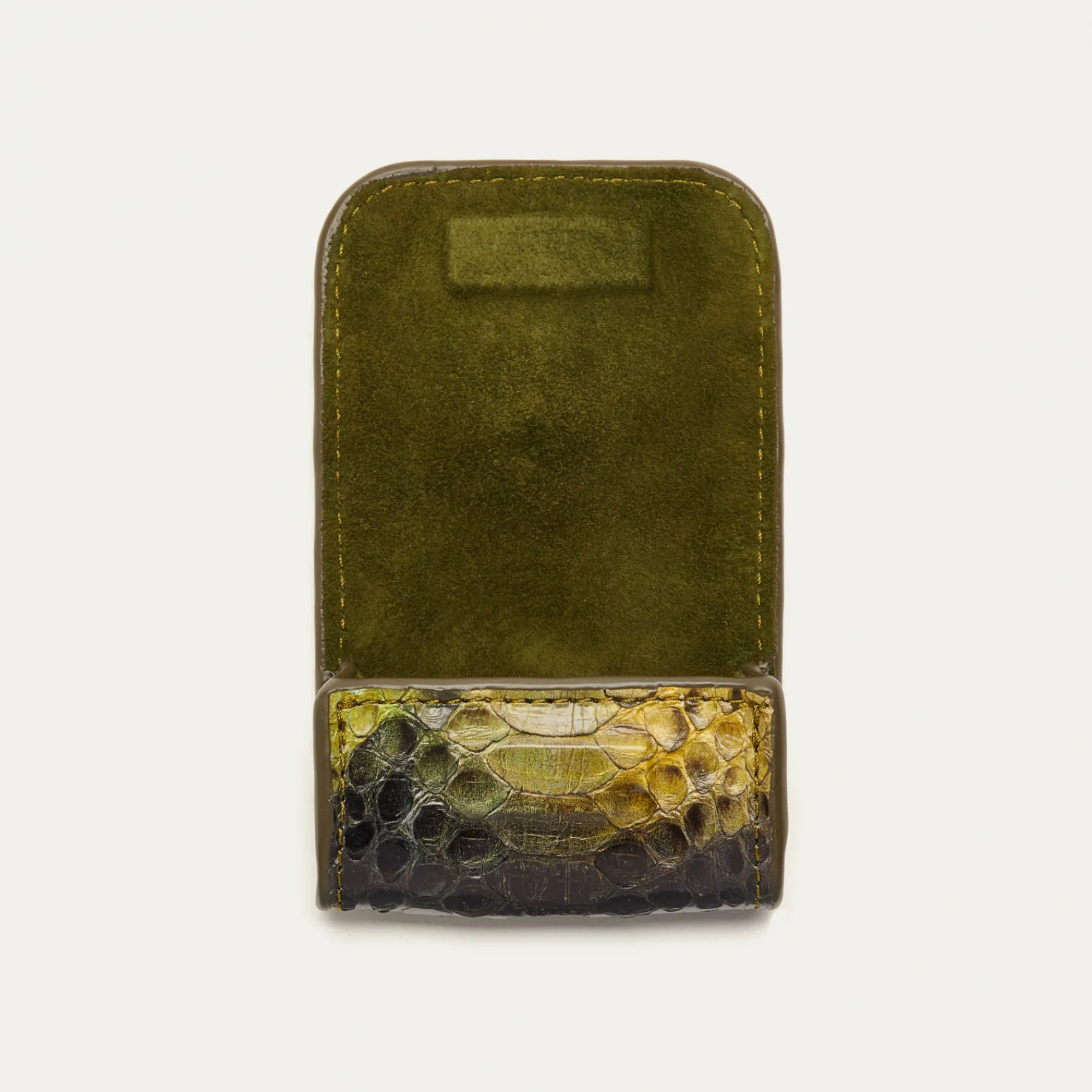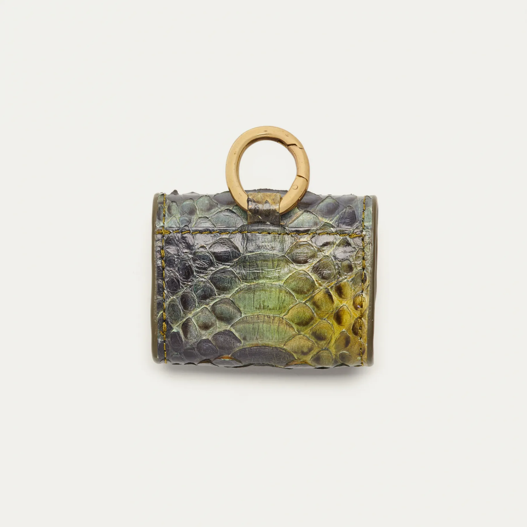 Notre premier étui à AirPods Jamie entièrement composé de python est orné d’une beetle dorée à l’avant. Son mousqueton vous permettra de l’accrocher aussi bien à vos passants de pantalon, qu’à votre sac ou étui de téléphone portable, tel que notre Double Marcus.