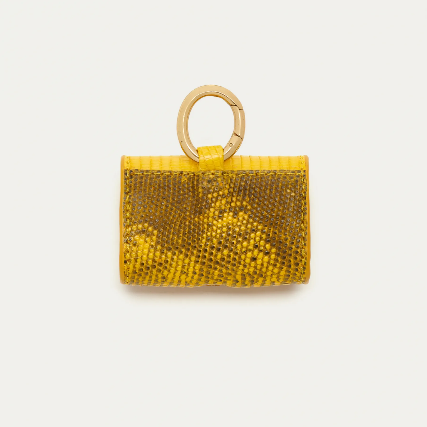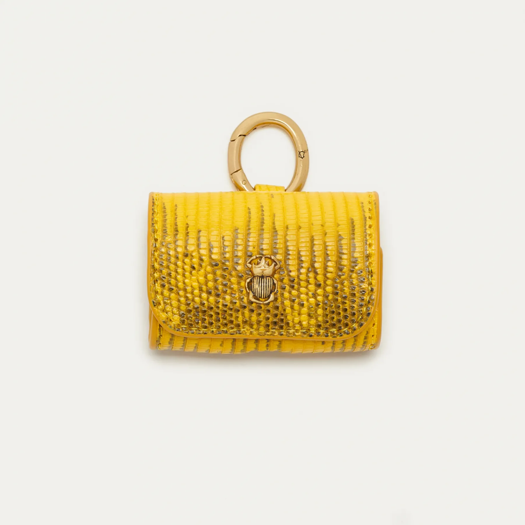 Notre premier étui à AirPods Jamie entièrement composé de lézard est orné d’une beetle dorée à l’avant. Son mousqueton vous permettra de l’accrocher aussi bien à vos passants de pantalon, qu’à votre sac ou étui de téléphone portable, tel que notre Double Marcus.