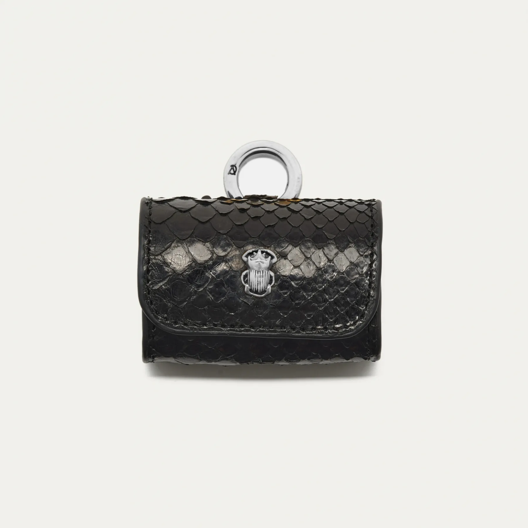 Notre premier étui à AirPods Jamie entièrement composé de python est orné d’une beetle argentée à l’avant. S…