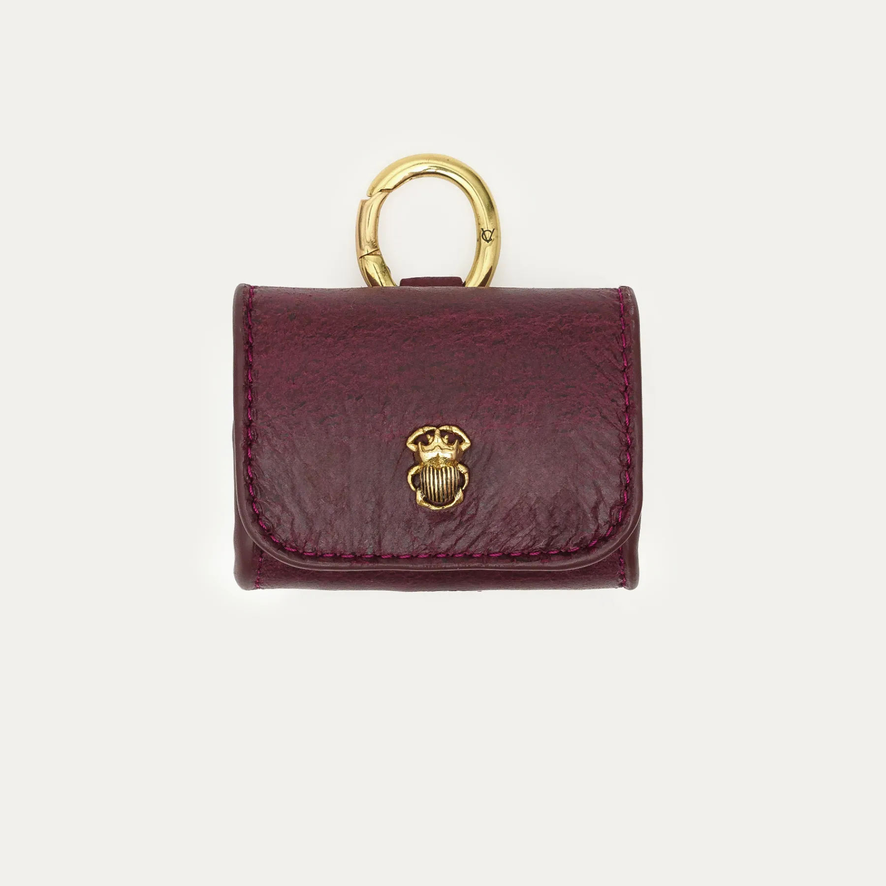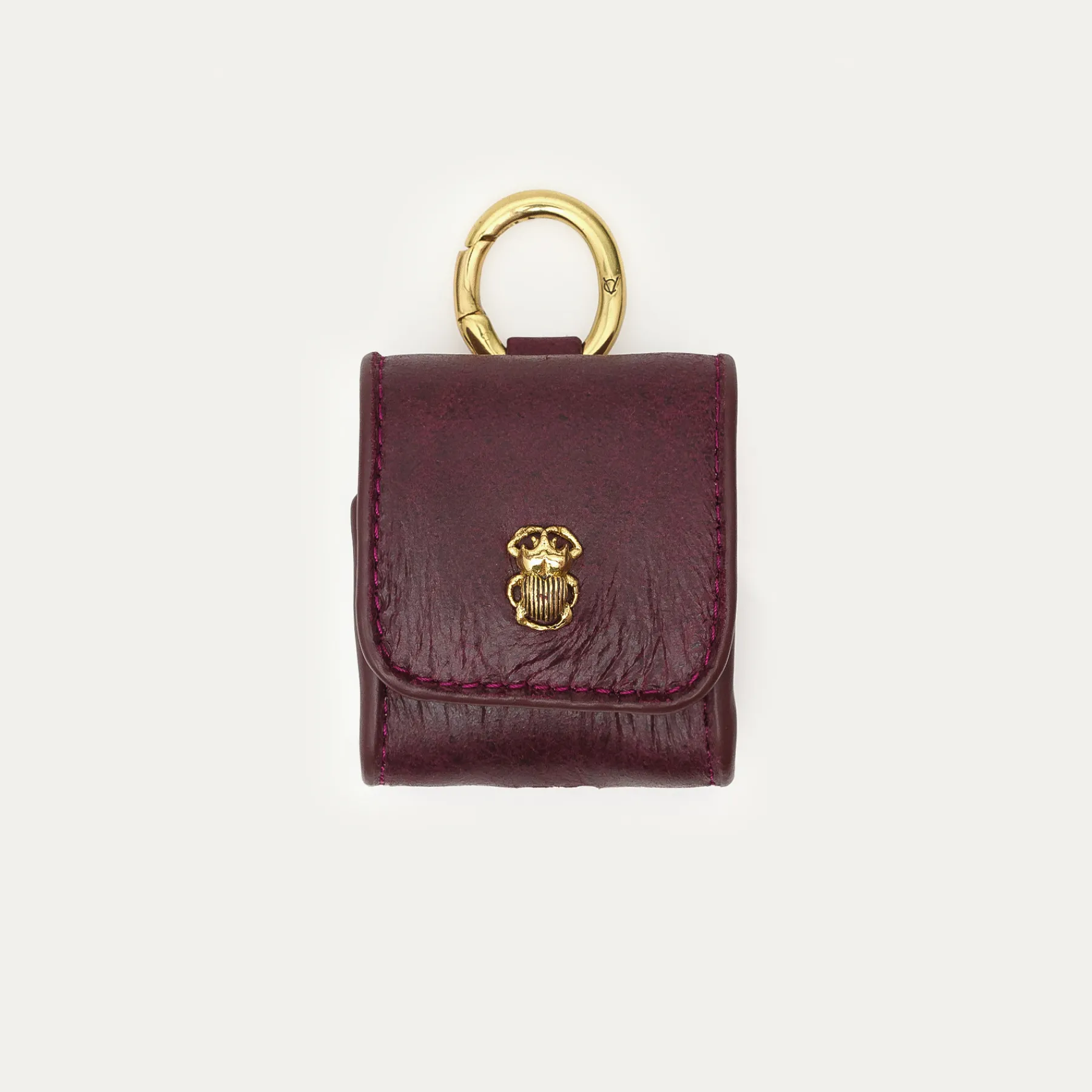 Notre premier étui à AirPods Jamie entièrement composé en nubuck et cuir embossé est orné d’une beetle dorée à l’avant. Son mousqueton vous permettra de l’accrocher aussi bien à vos passants de pantalon, qu’à votre sac ou étui de téléphone portable, tel que notre Double Marcus.