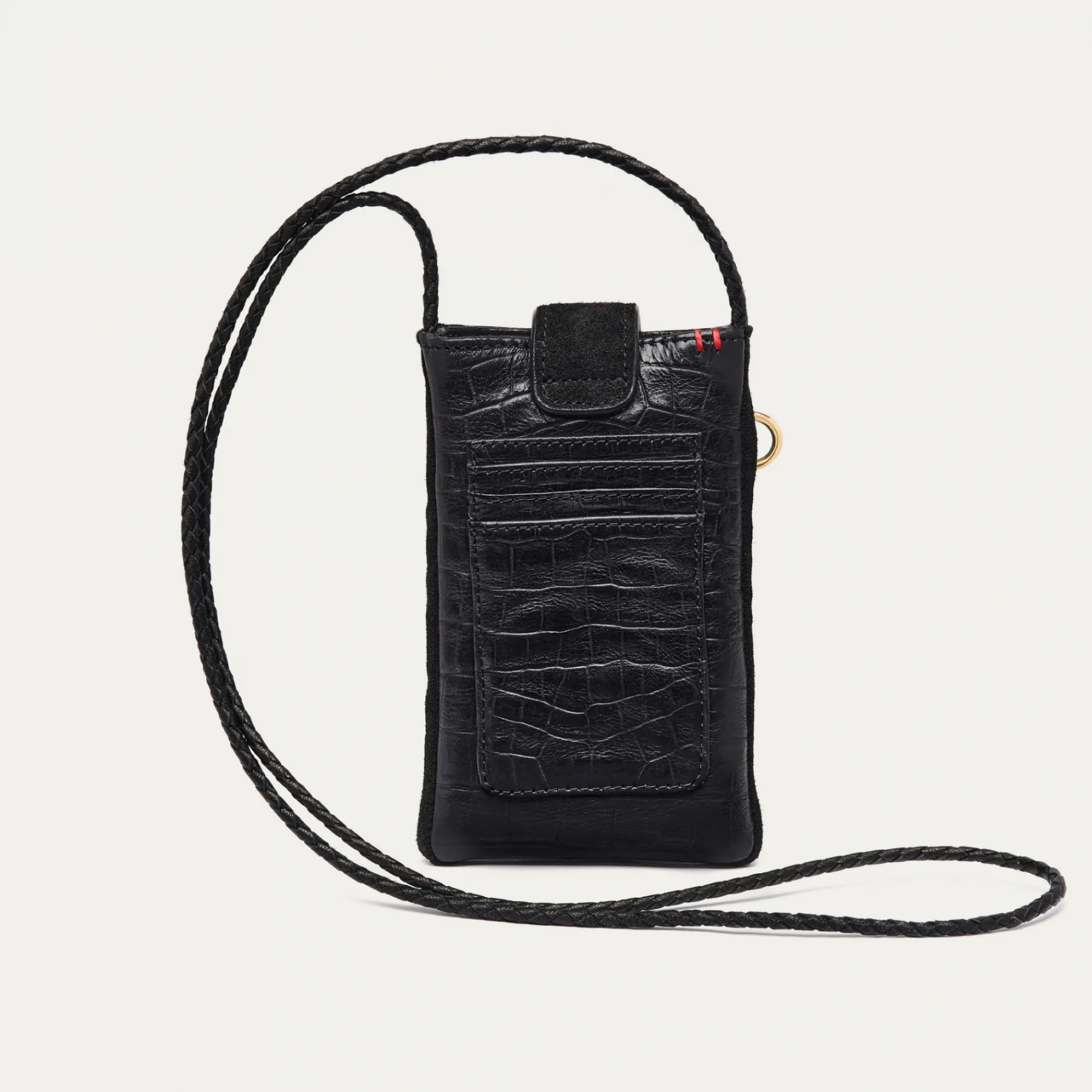 Cette pochette en cuir embossé croco conçue afin de transporter votre téléphone est réalisée à la main. Le double Marcus est doté de deux compartiments. La poche principale vous permettra d’accueillir votre smartphone et la poche avant vos lunettes. Ces deux poches se ferment à l’aide d’un rabat aimanté, orné d’un scarabée doré. À l’arrière, 3 fentes vous permettront d’y ranger vos différentes cartes.