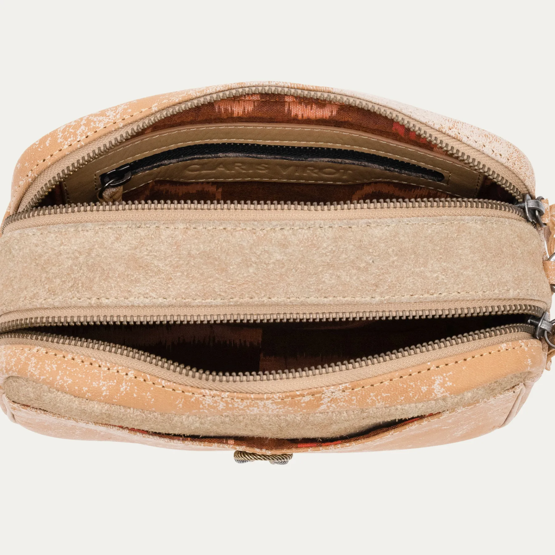 Ce sac en cuir porté épaule ou croisé est organisé en deux compartiments avec une poche centrale parfaitement étudiée pour y accueillir votre téléphone. Ses deux compartiments distincts ont été pensés afin de vous organiser au mieux! Enfin, sa large bandoulière en tissu Timor permet un porté confortable et léger.
