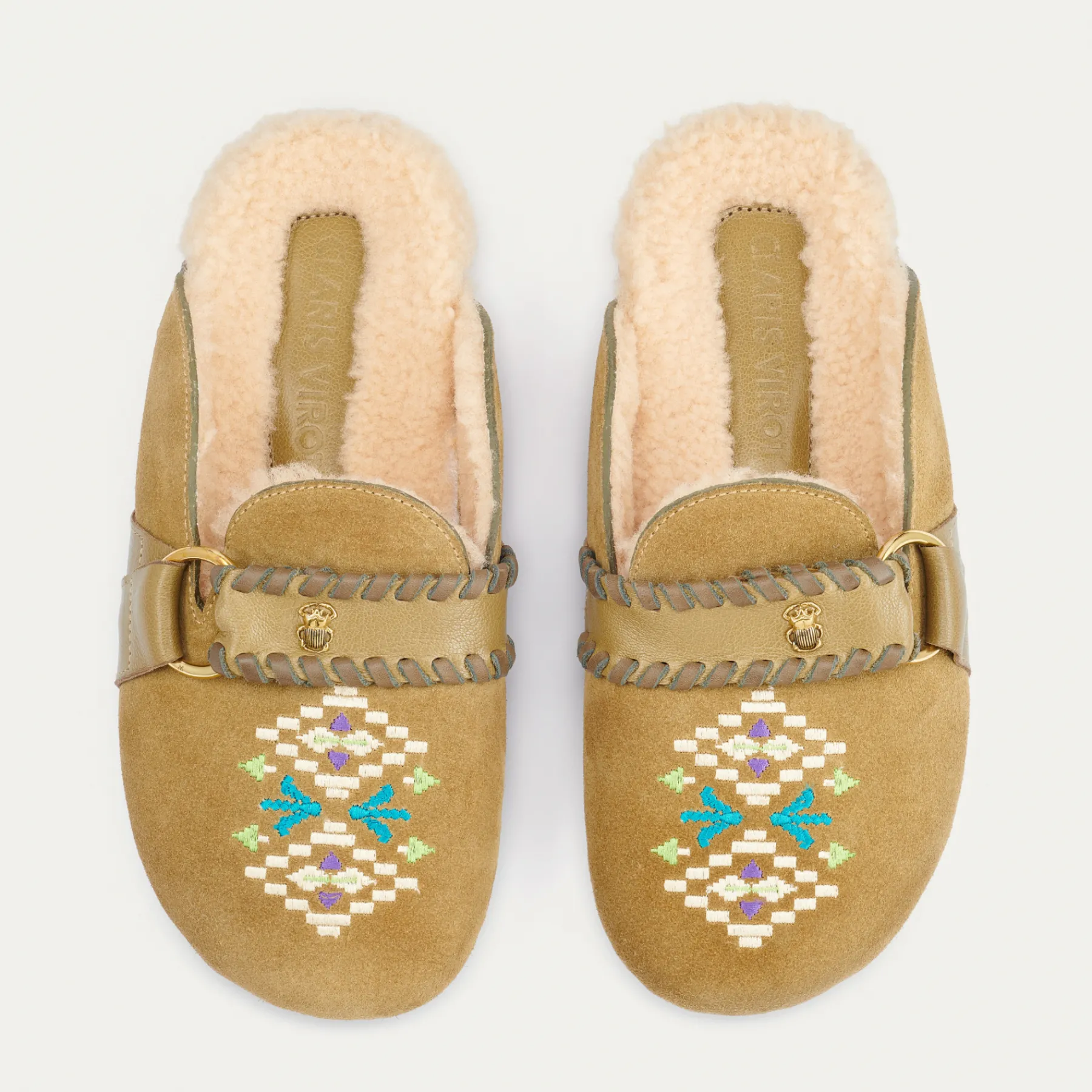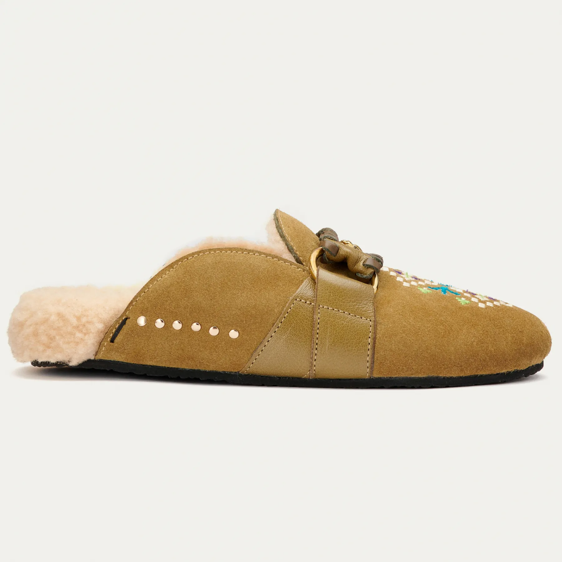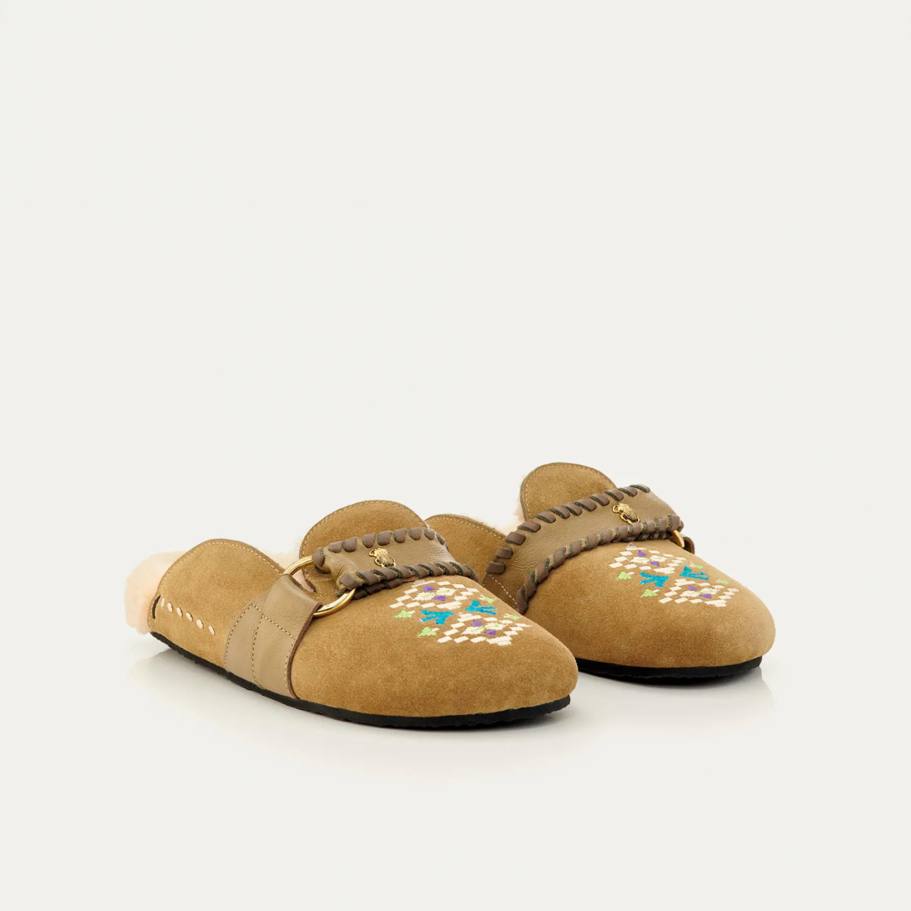 Nos mules Georgette ont été réalisées à partir de veau velours avec une lanière en cuir de chèvre au tannage végétal et peau lainée. Tel un incontournable, Georgette se mariera aussi bien à un look décontracté qu’à un look plus habillé.