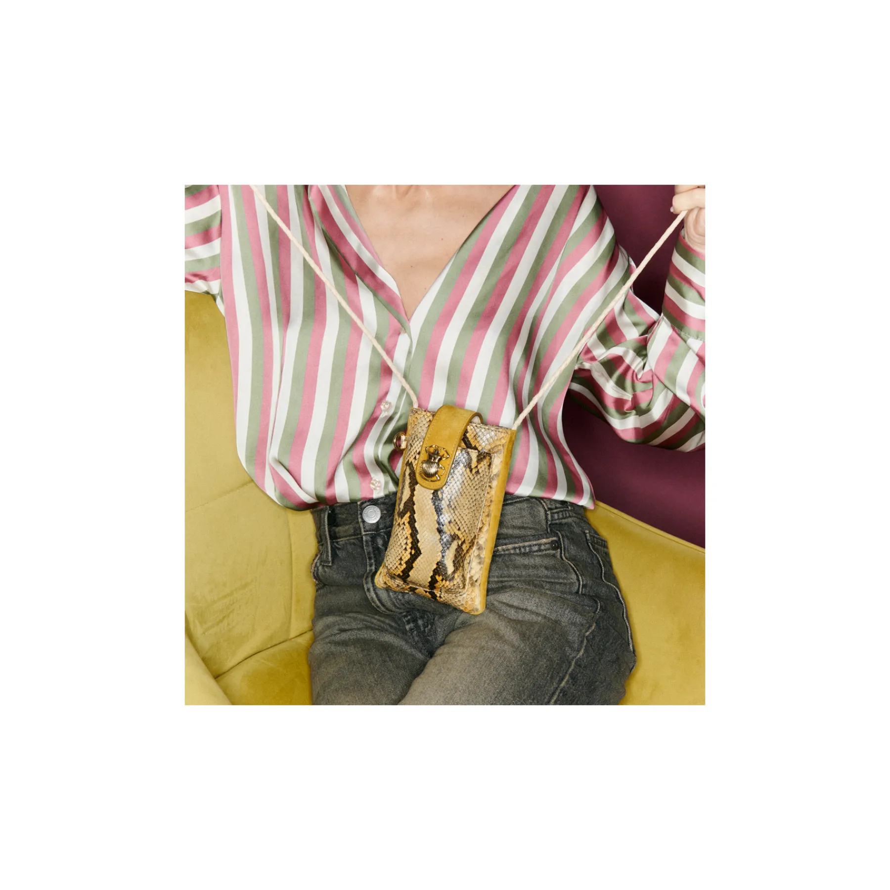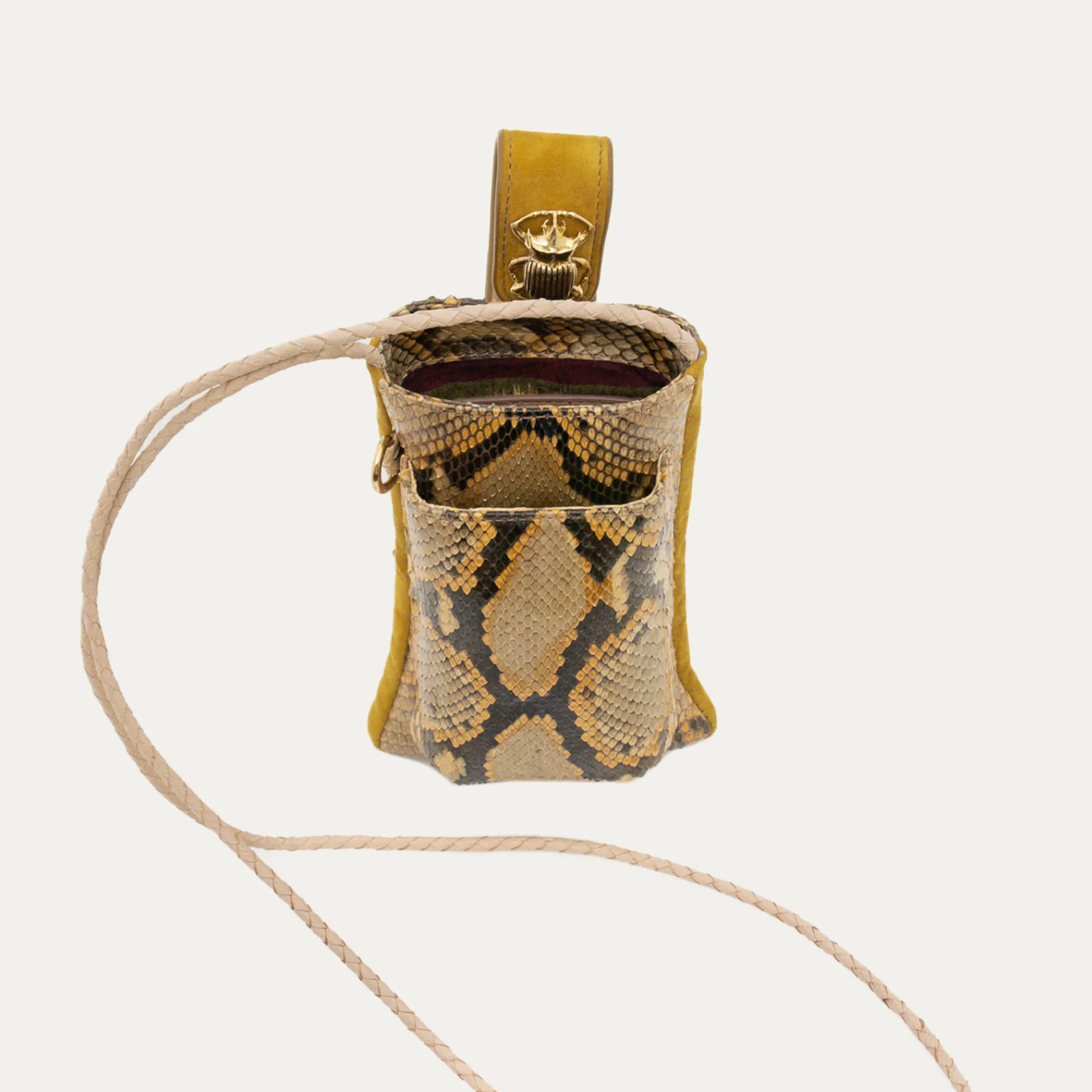 Cet étui en python et cuir suédé conçue afin de transporter votre téléphone est réalisée à la main. Le double M…